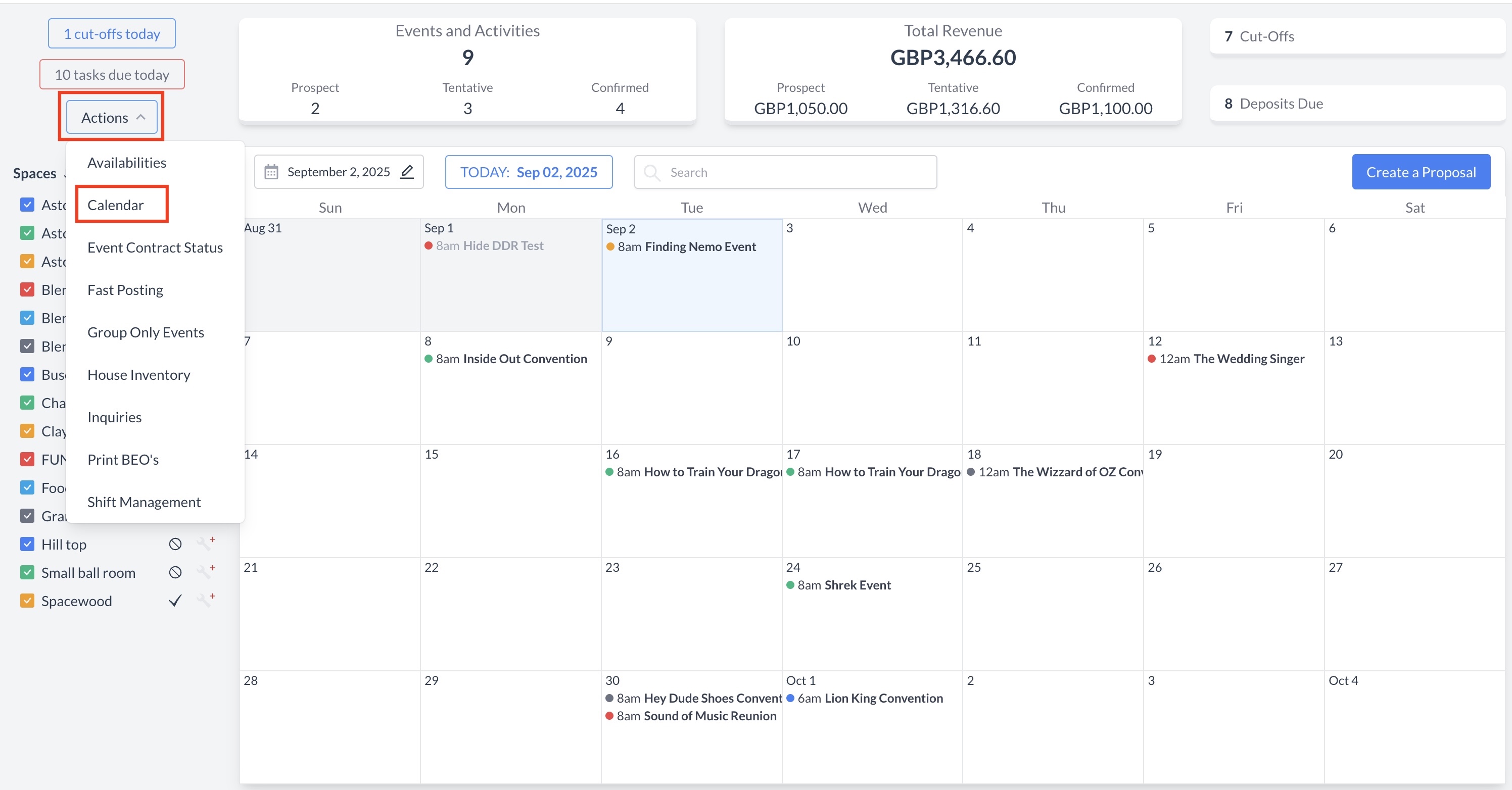 Actions Menu > Calendar