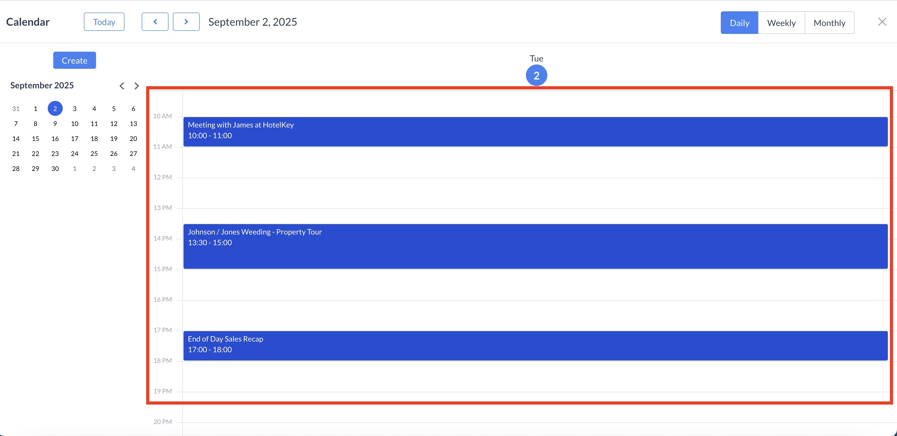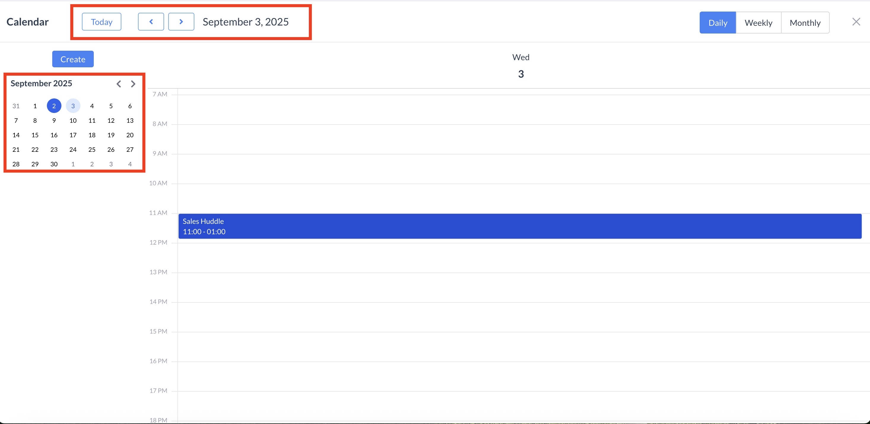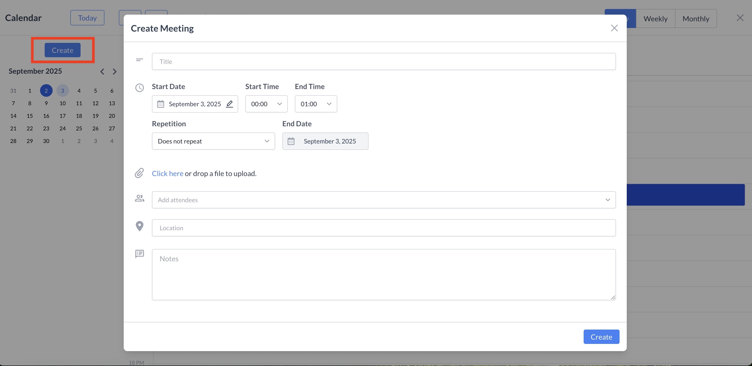 Once all required information is entered, click Create to add the meeting to your calendar.
