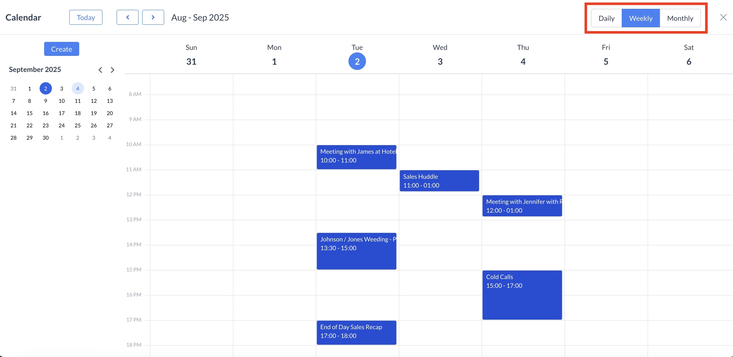 Set up recurring events (e.g., weekly meetings)