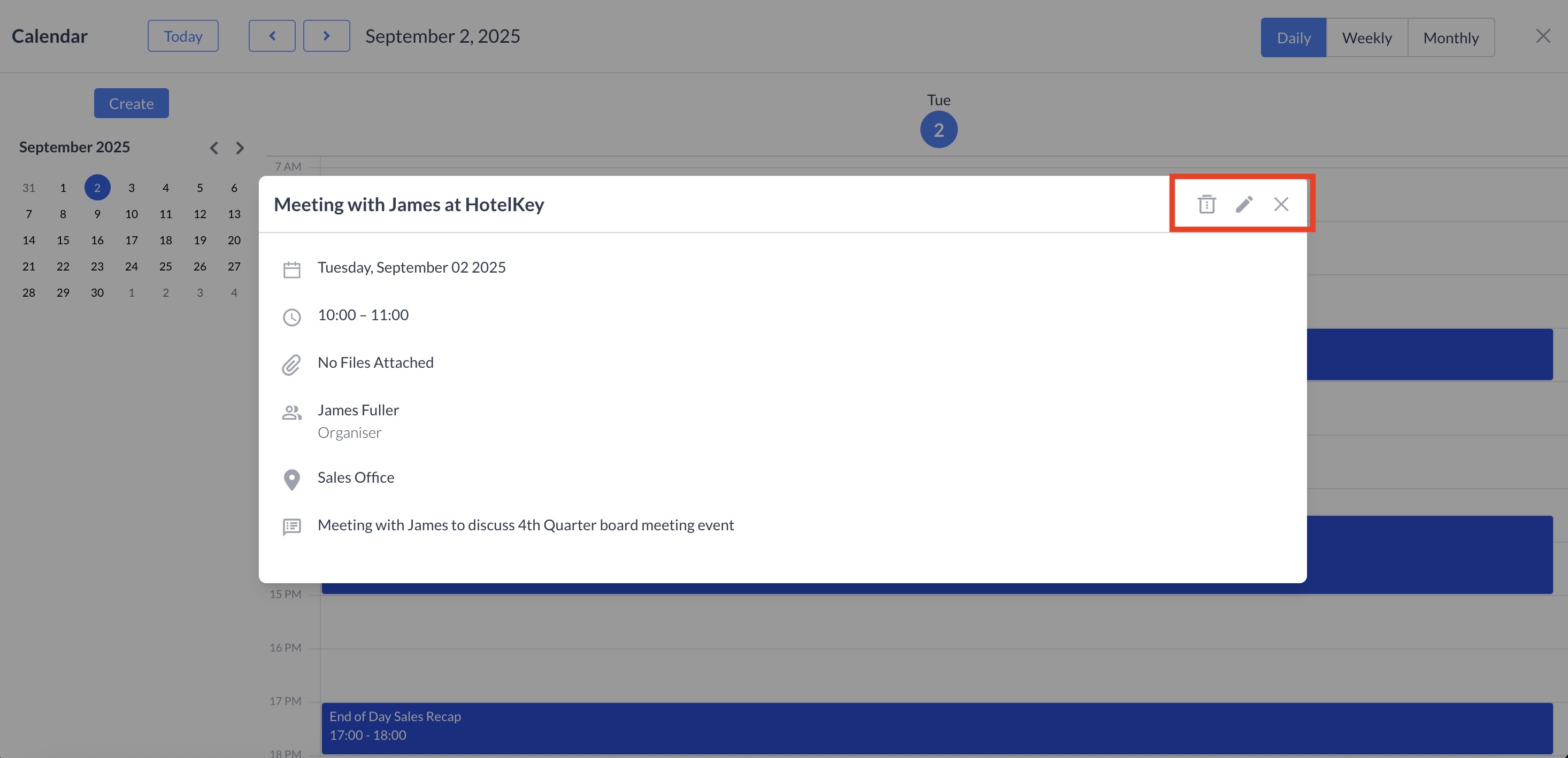To delete the appointment, click the trash can icon.