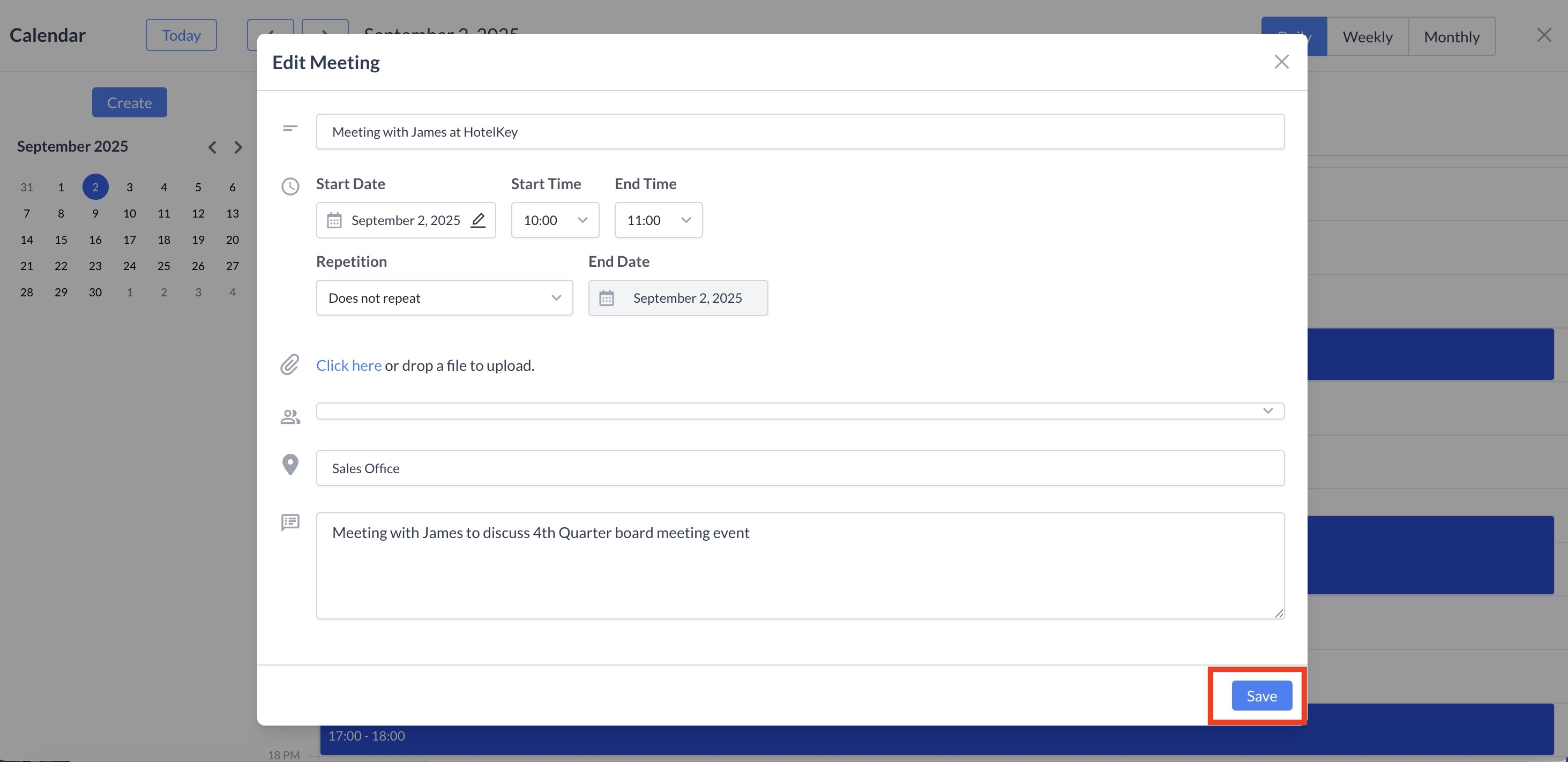 Note β Enter any relevant notes or a description for the meeting.