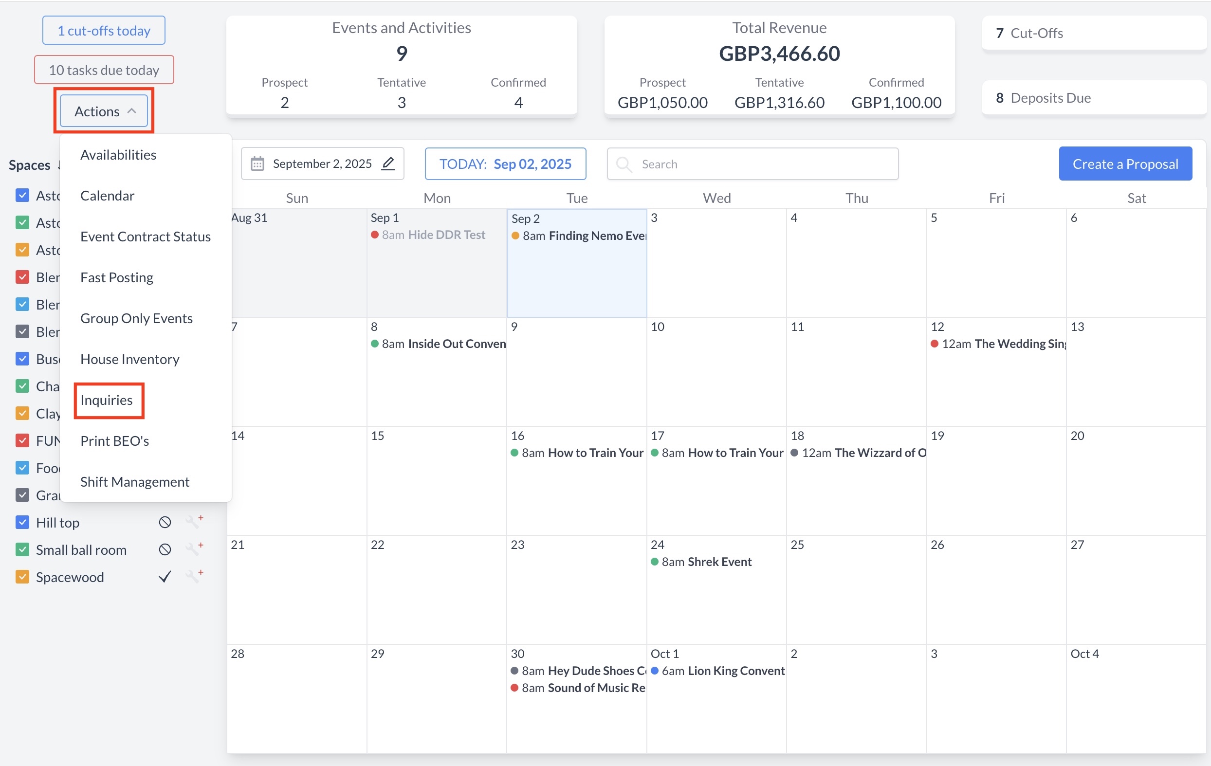 Filter by Coordinator: Use this option to filter inquiries by the assigned event coordinator.