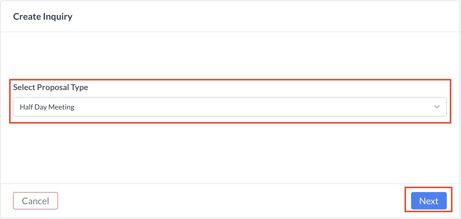 Select the appropriateProposal Typefrom the dropdown menu. This type will be applied automatically if the inquiry is converted into a proposal.
