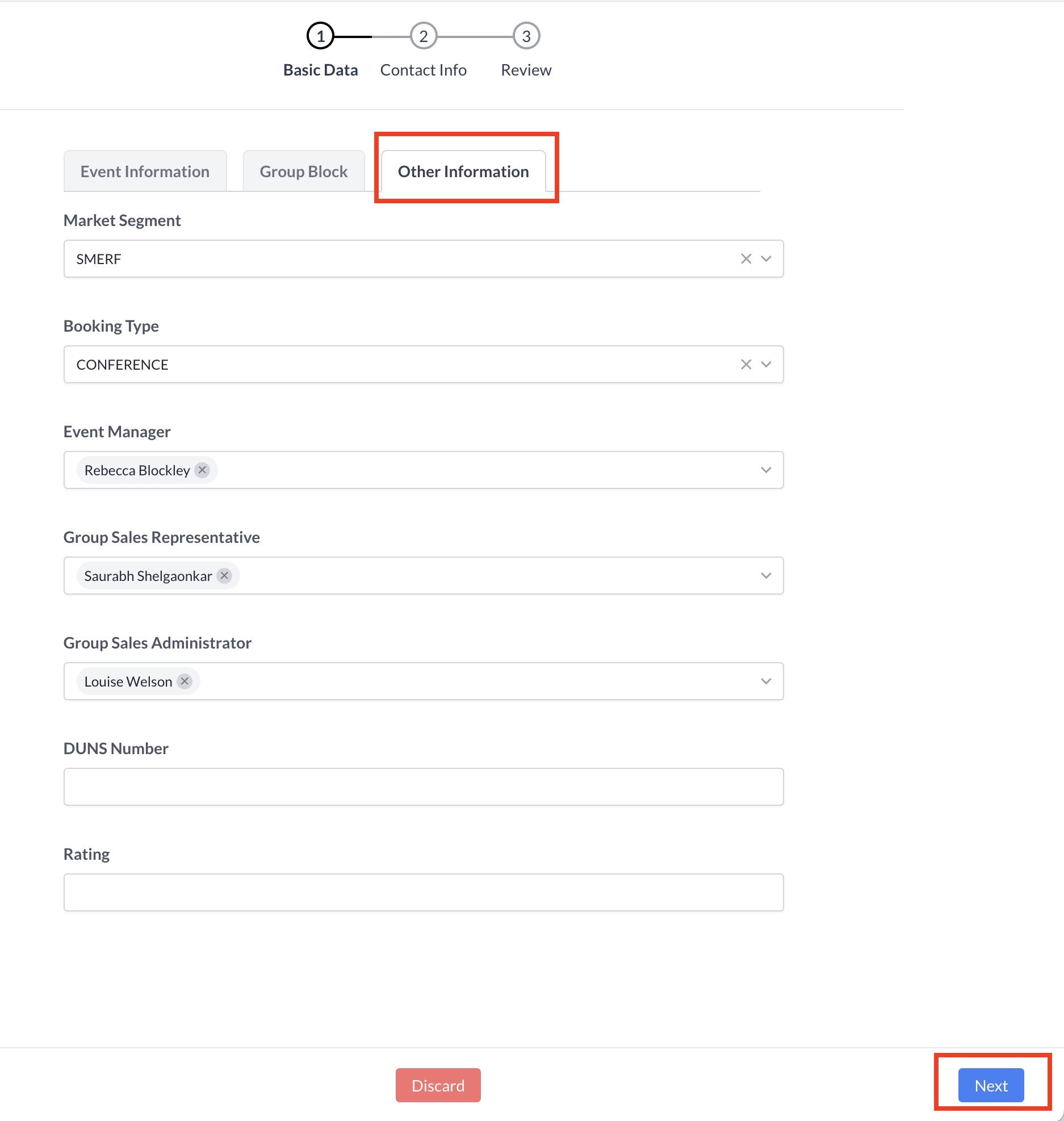 Group Sales Administrator: Select the sales administrator who will assist with managing the group booking and related tasks.