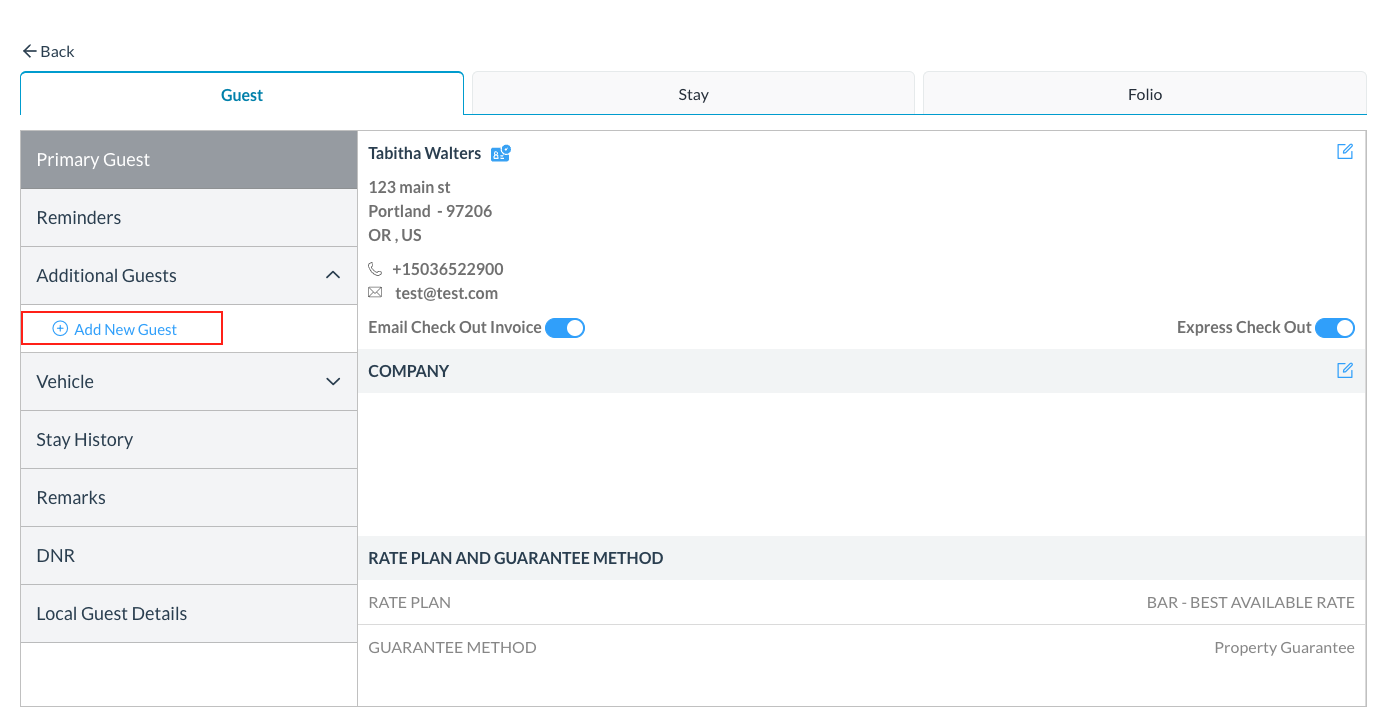 An Add New Guest link populates. Select Add New Guest. | ![]() |