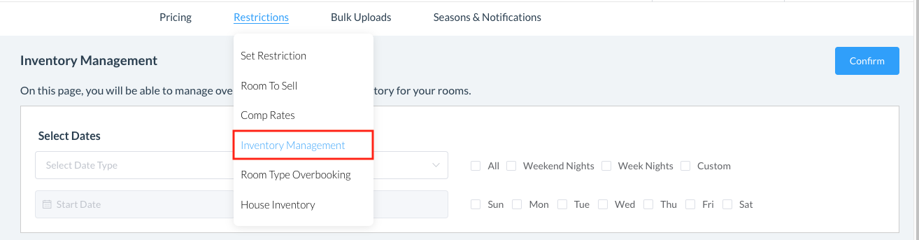 On the Restrictions dropdown, select Inventory Management | ![]() |