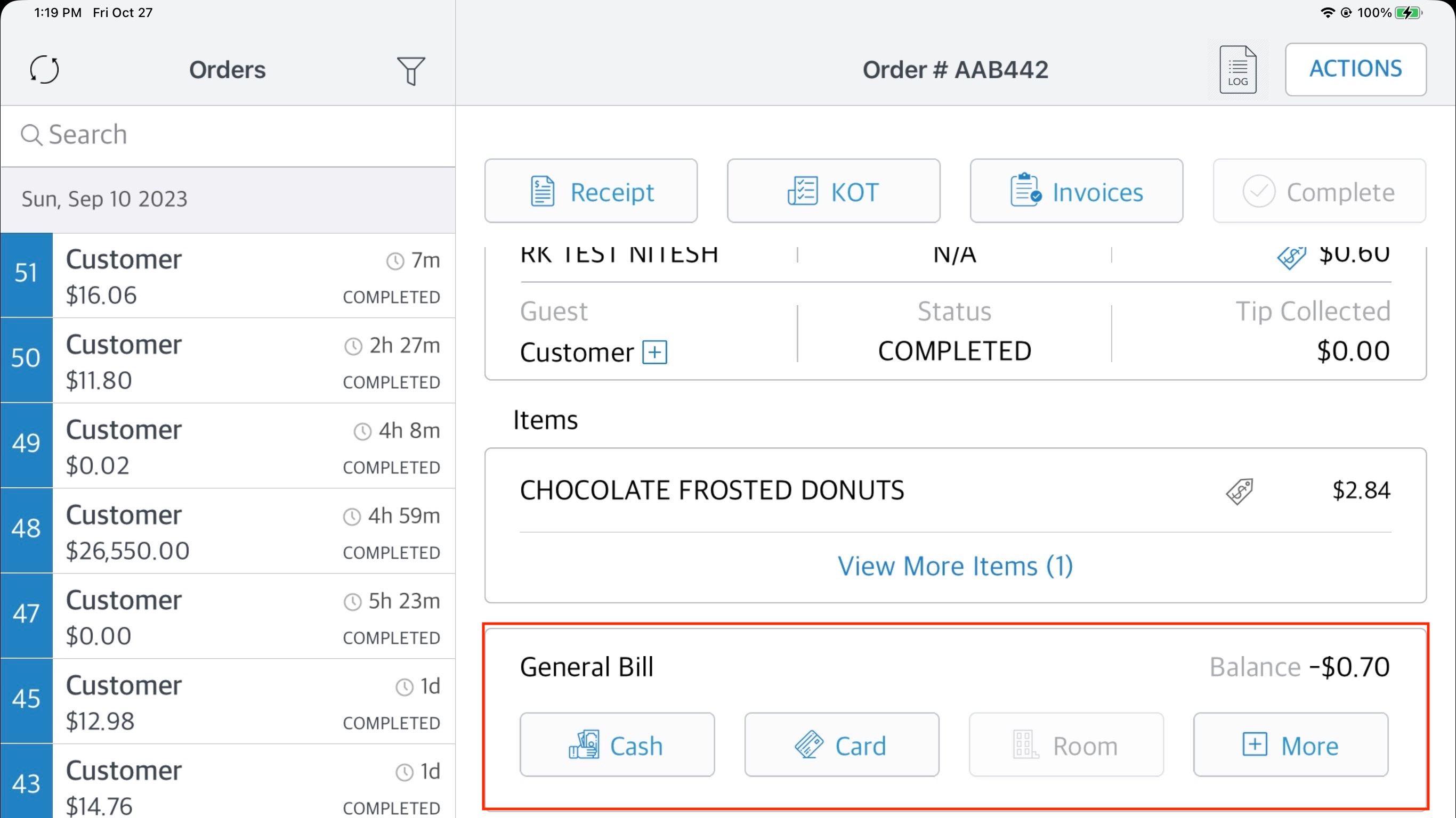 You are then taken back to the orders tab, where you will need to address any discrepancies in general bill to ensure the order is balanced | ![]() Order Screen - Updated |