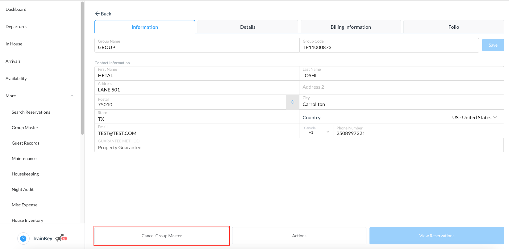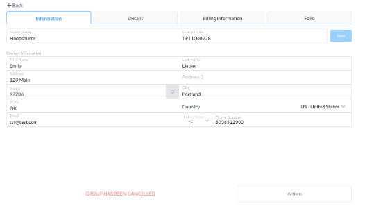 The group is now cancelled and indicates so on the Group Master | ![]() |