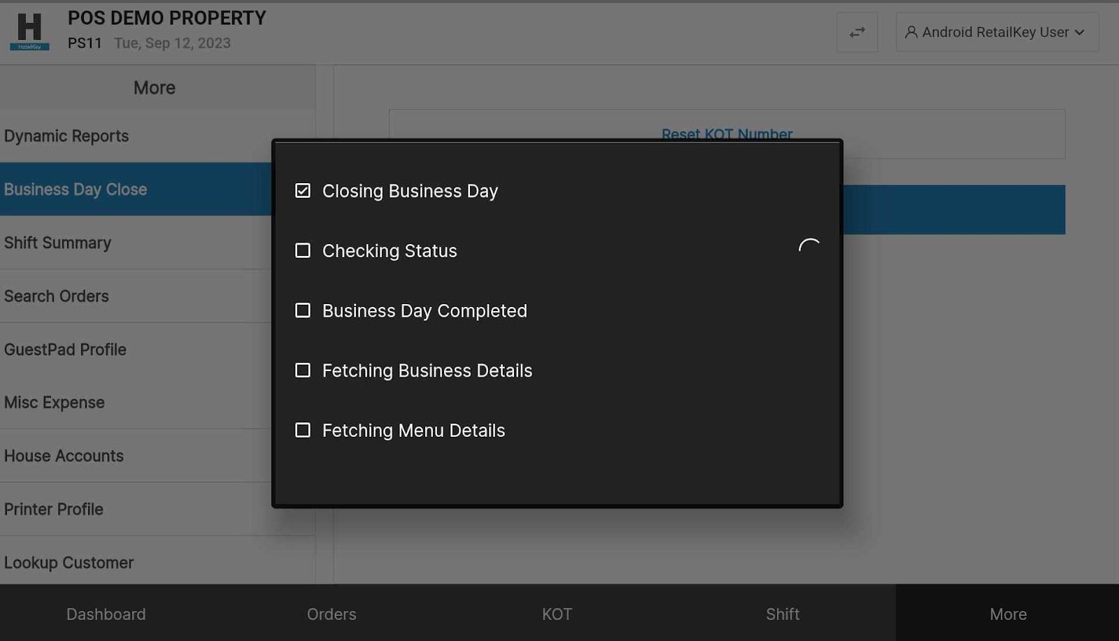 If all three prerequisites are met, follow the process below to manually close the business day.