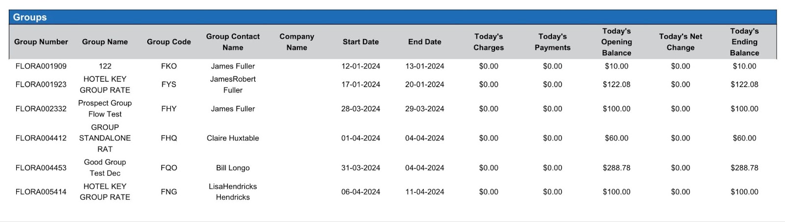 Today’s Opening Balance | Shows opening balance on today’s group master folio *Positive number indicates there is a positive balance due *Negative number indicates there is a negative balance due | YES | Not Applicable |