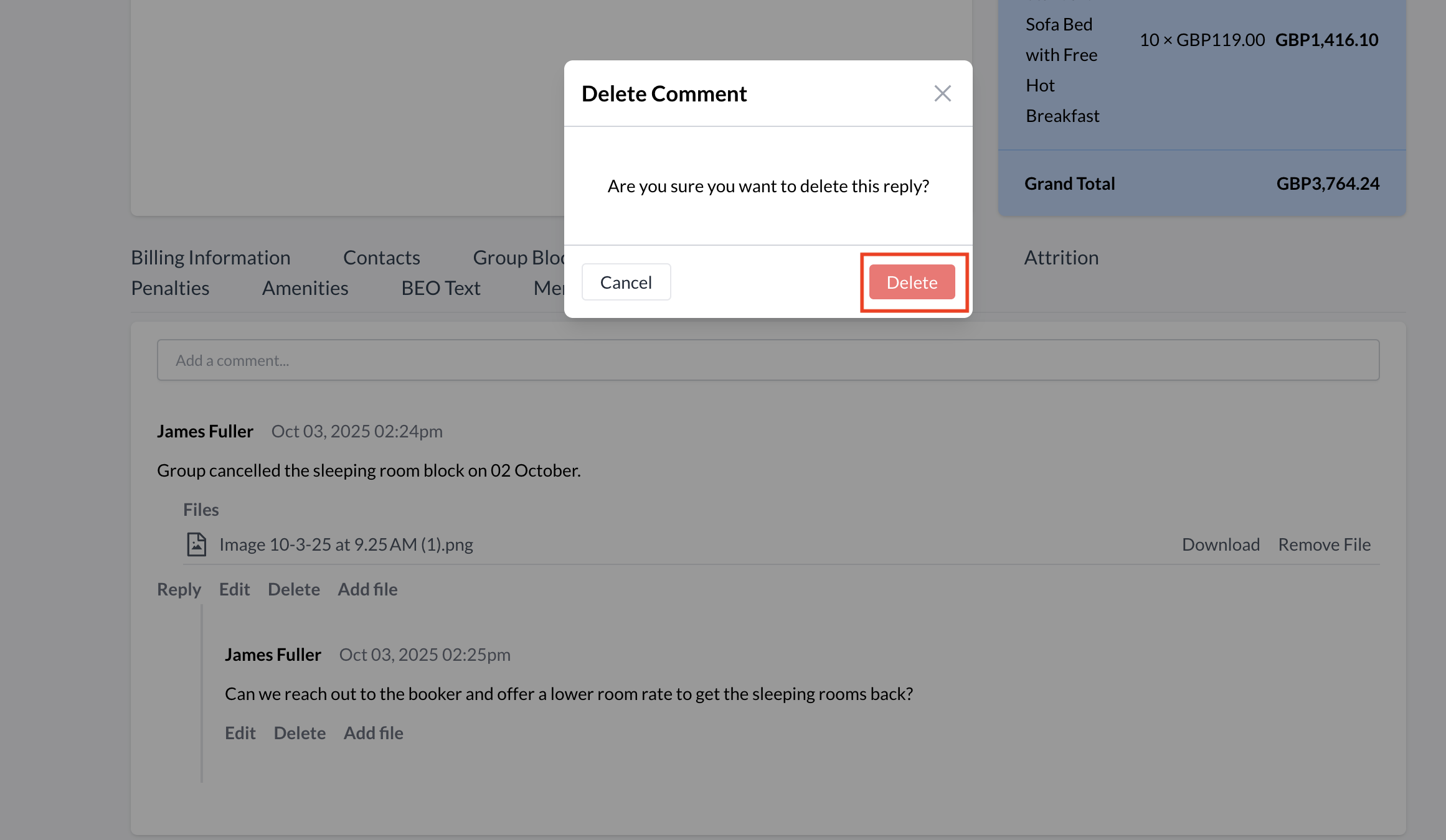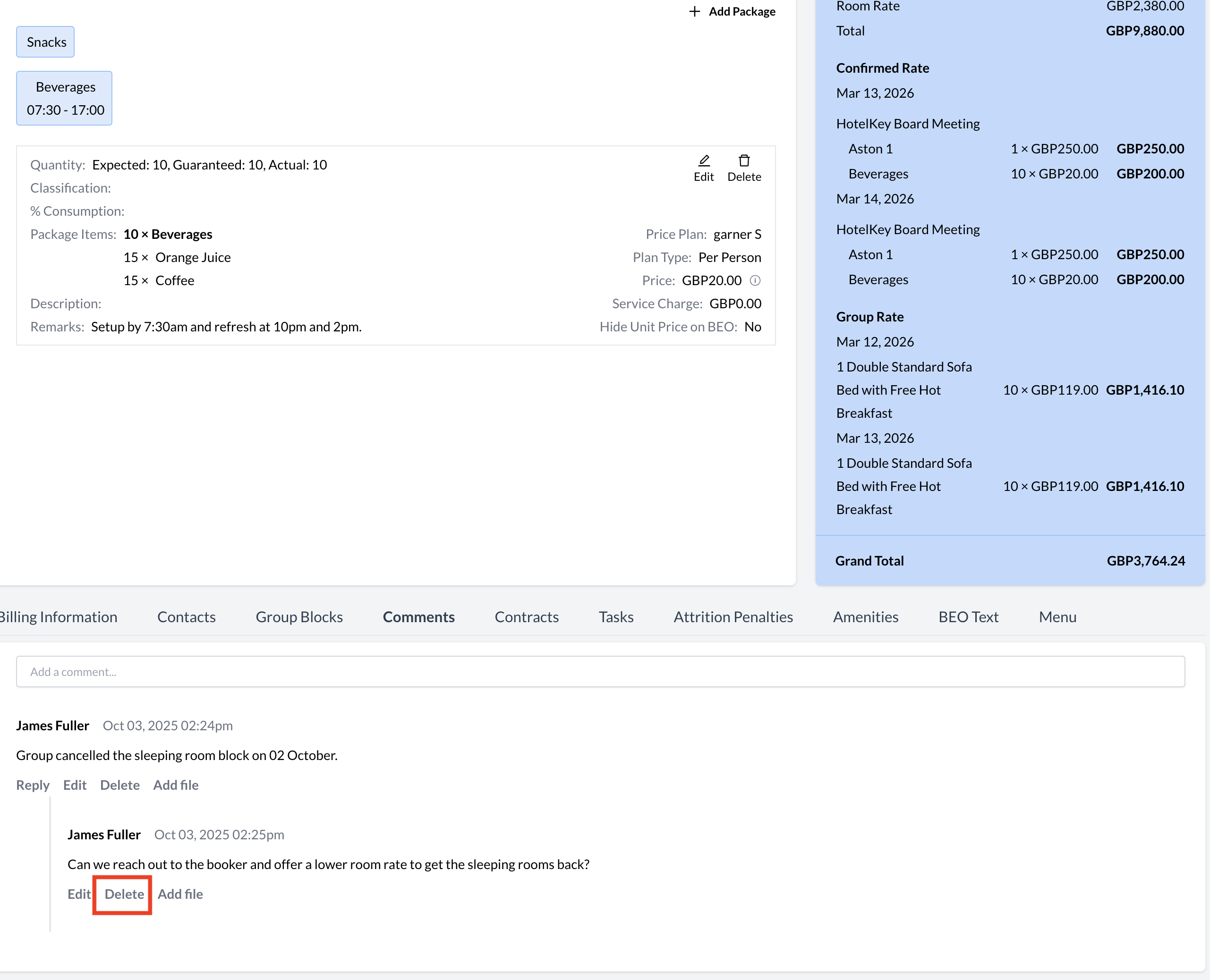 These comments are time-stamped and attributed to the user who posted them, ensuring a clear communication trail throughout the lifecycle of the event.