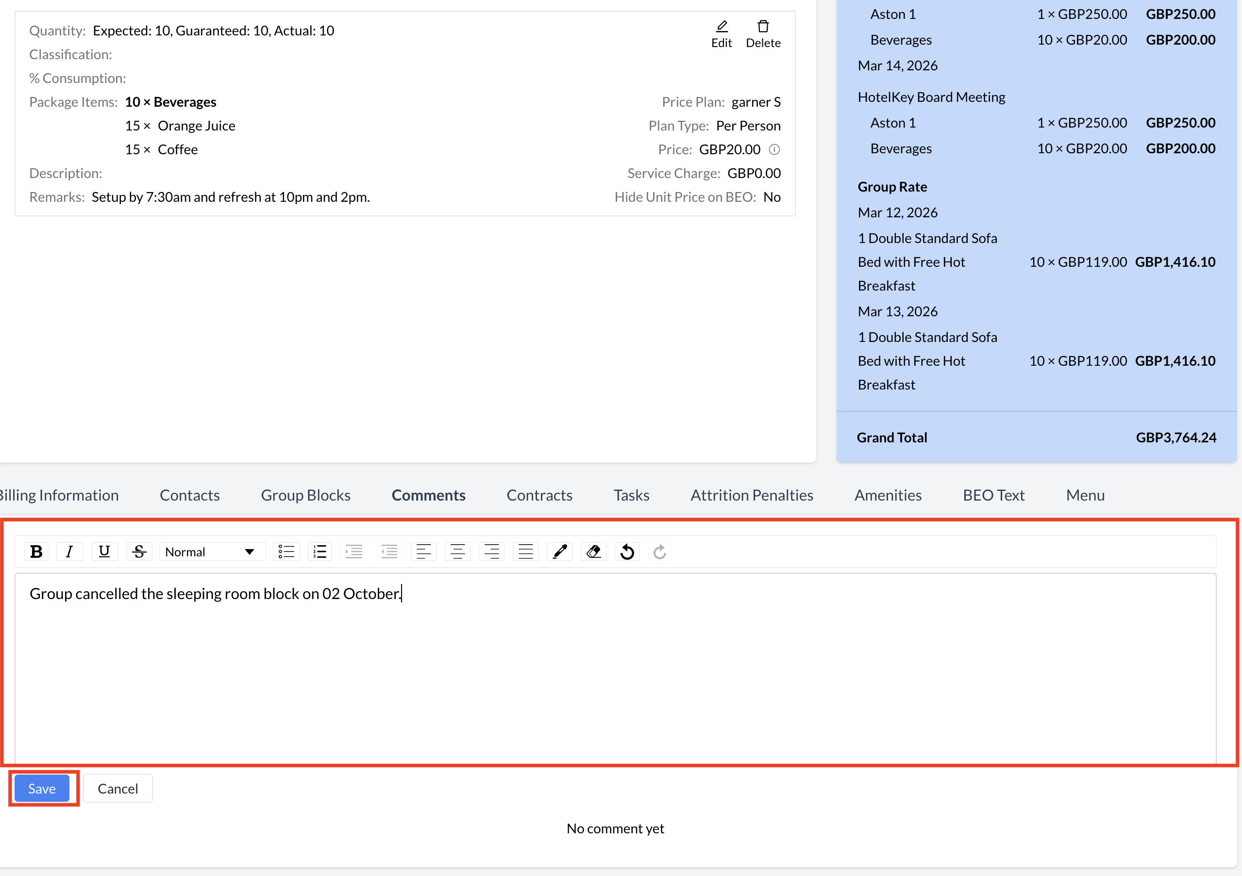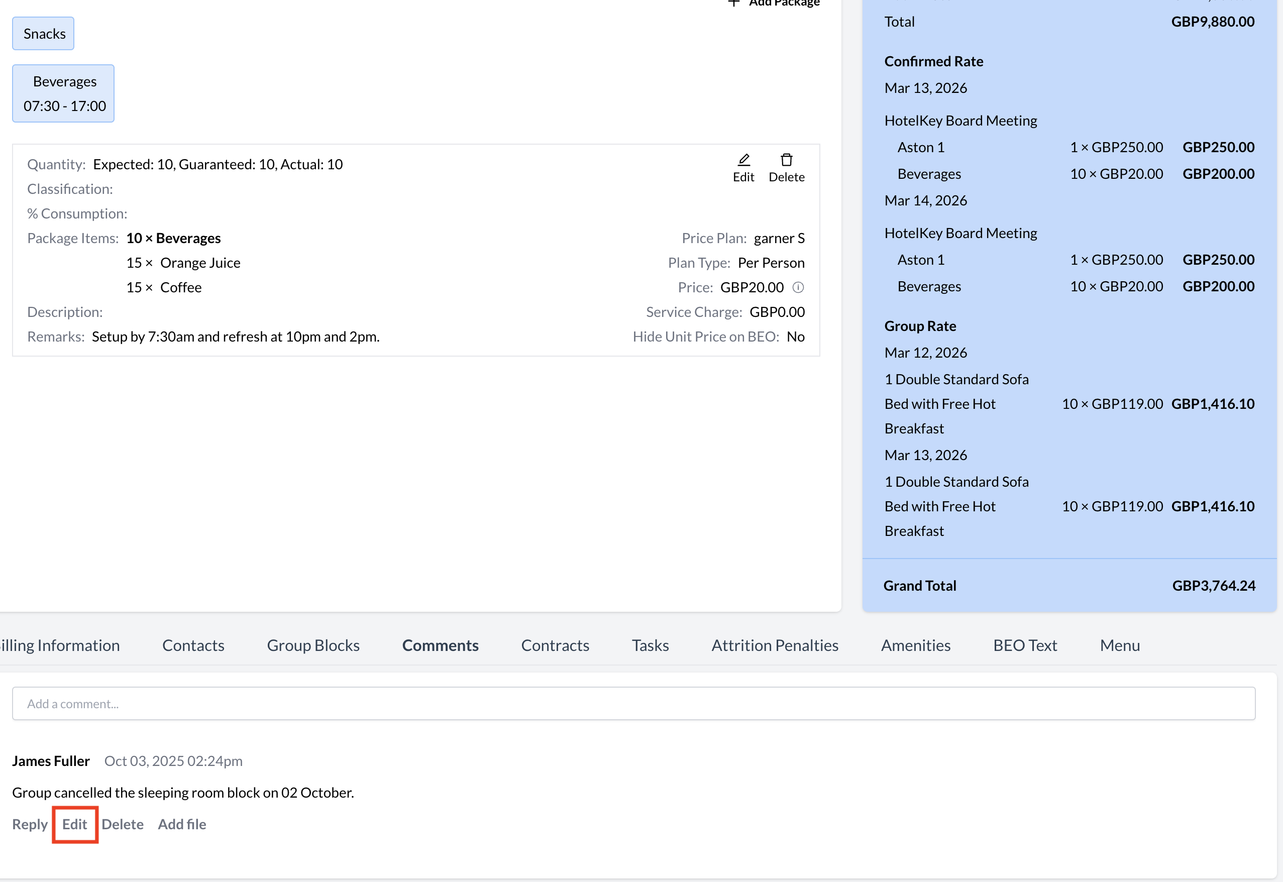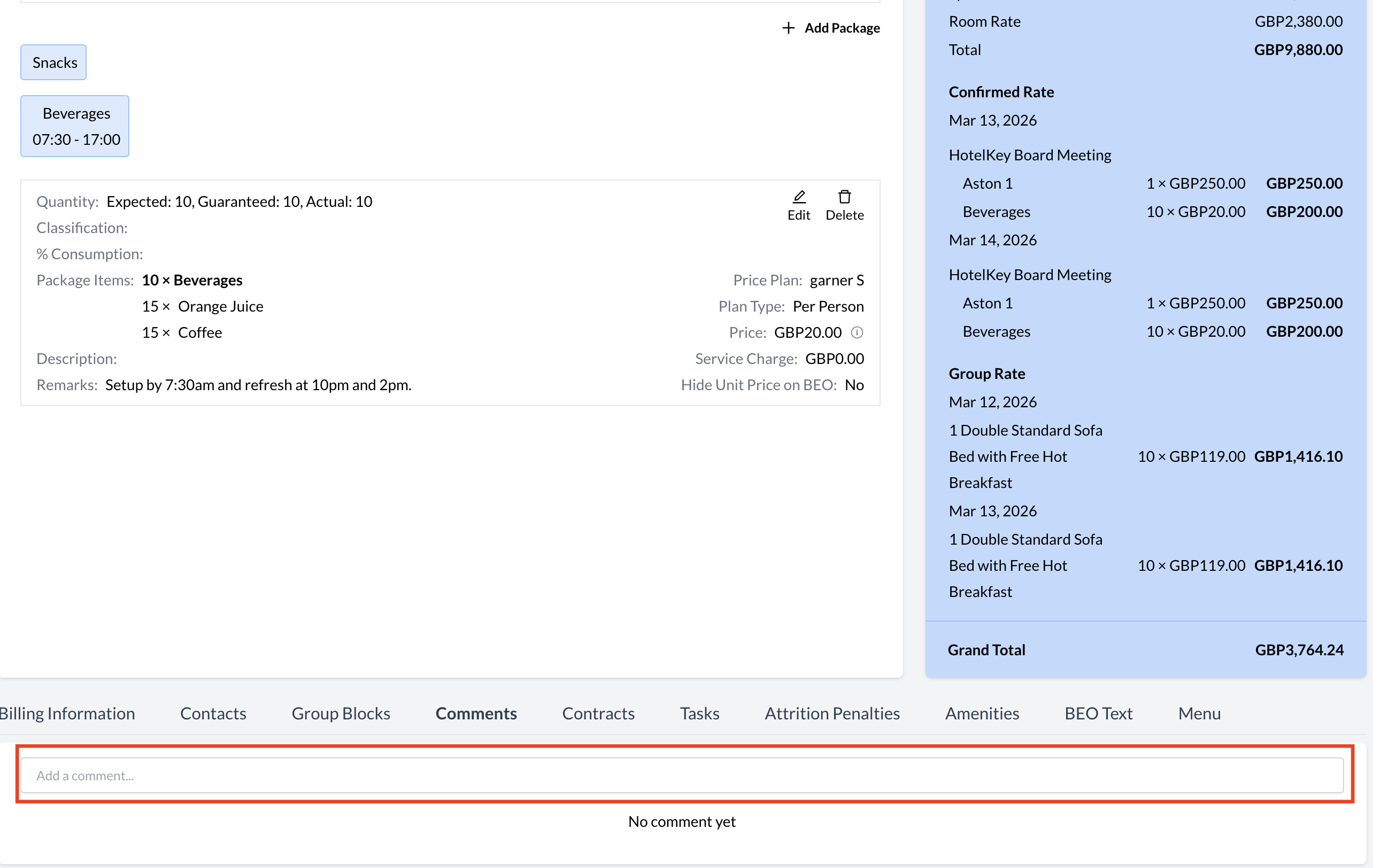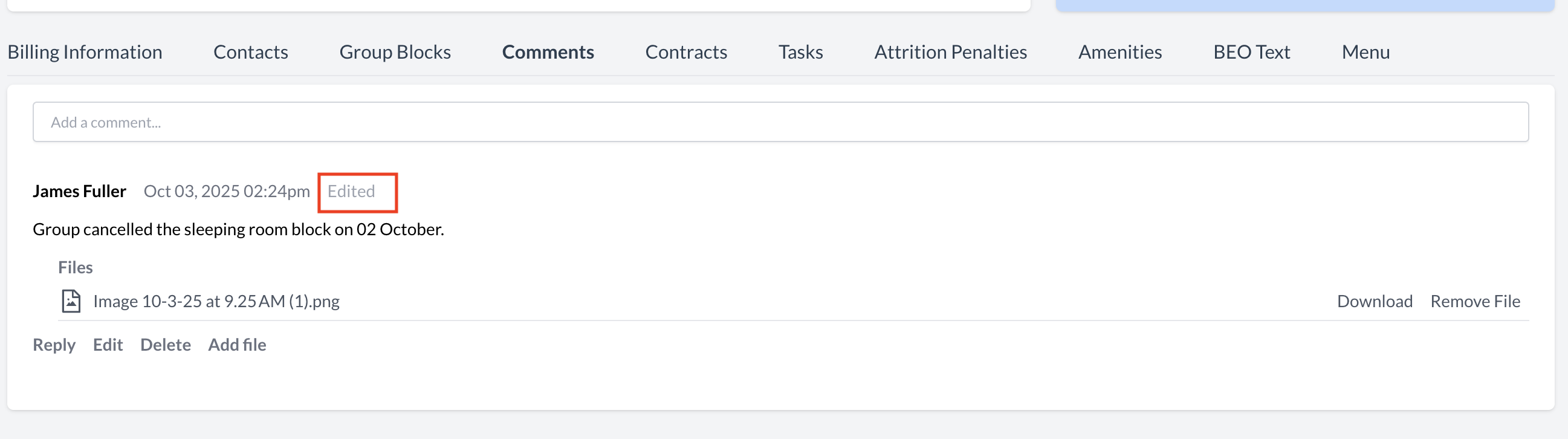 Accessing the Comments SectionTo view or add comments on an Event Record (Reservation):