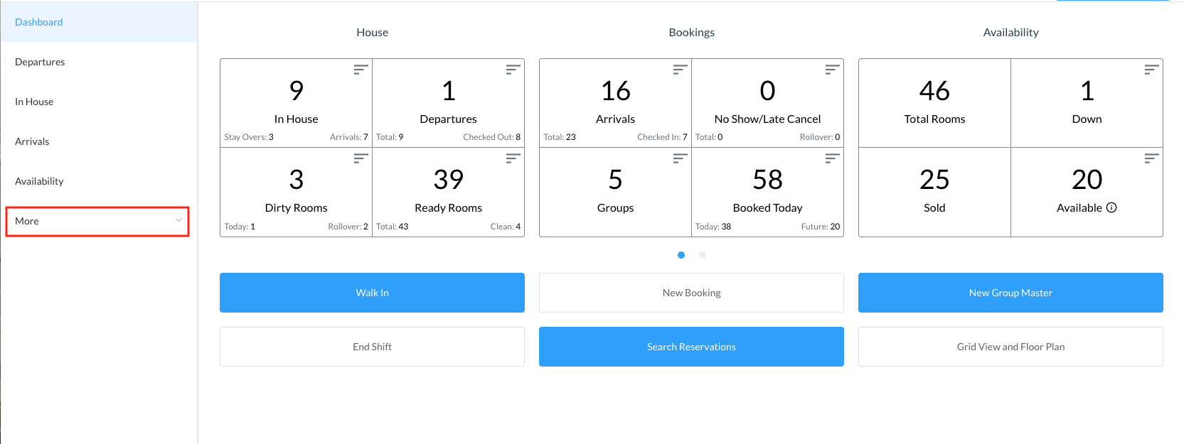 Select the More link in the sidebar menu on the Dashboard. | ![]() |