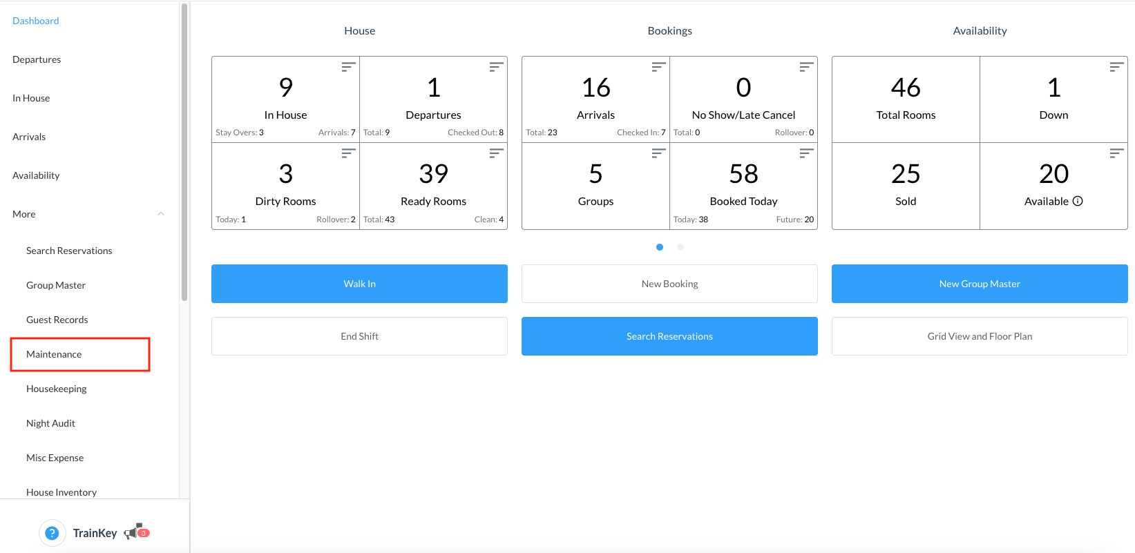 Scroll down in the expanded More menu to select the Maintenance link. | ![]() |