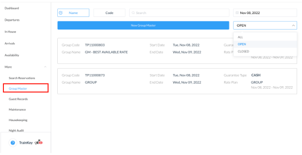 Note that the Group Master must be created before any group reservations can be booked within it.