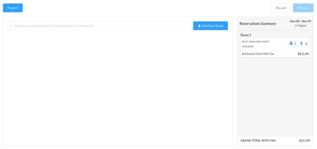 If you want to add the profile of a frequent guest, use the search bar OR click on Add New Guest tab | ![]() |
