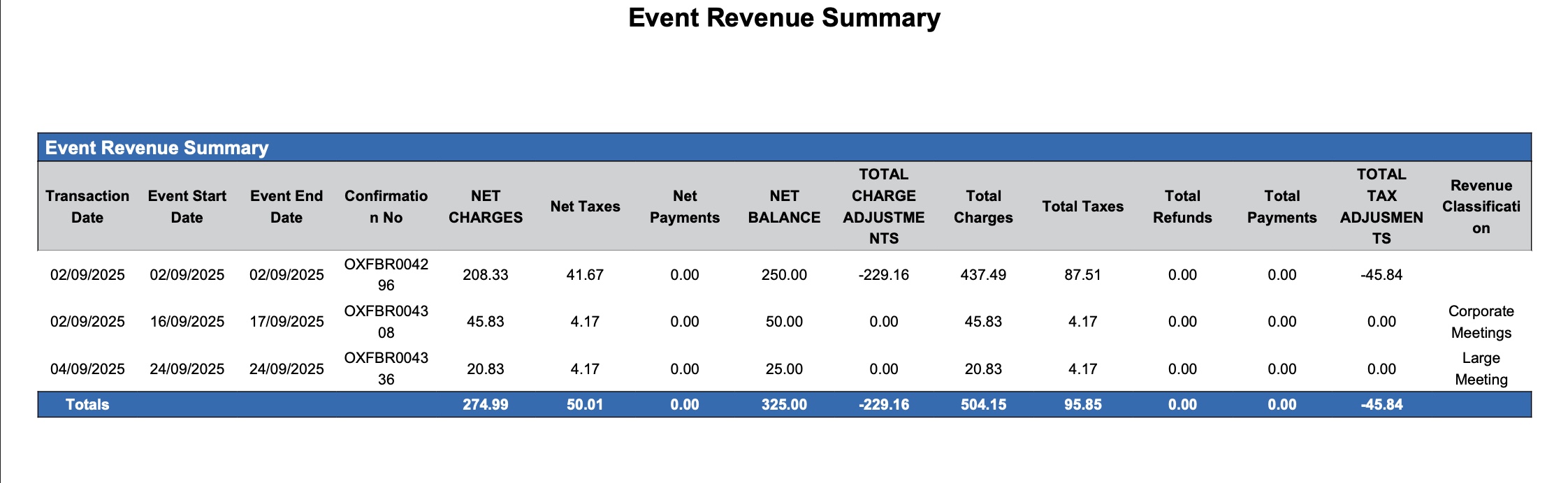 Event Revenue Summary Report