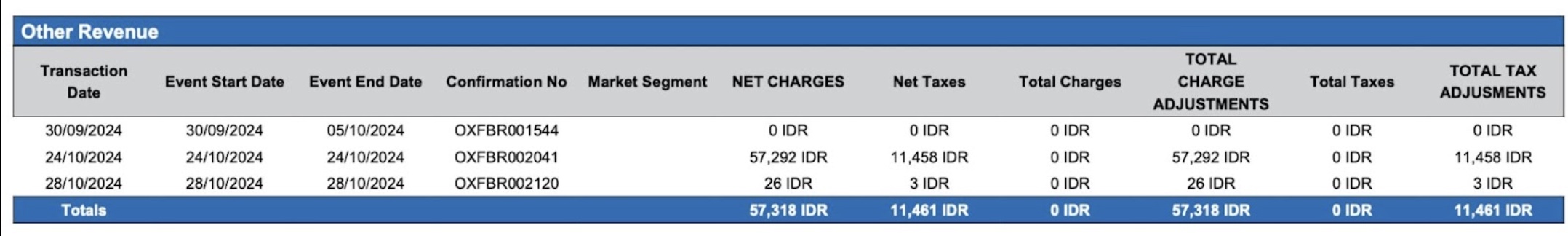 | Space Charge Adjustments = Sum of Charge AdjustmentsIn tax-inclusive hotels, taxes are deducted by the system to derive the Net Rate. |