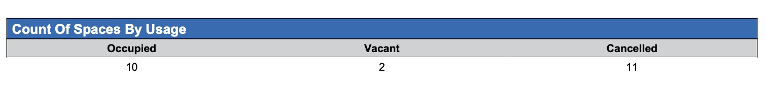 | Vacant = Sum of Unused Spaces |
