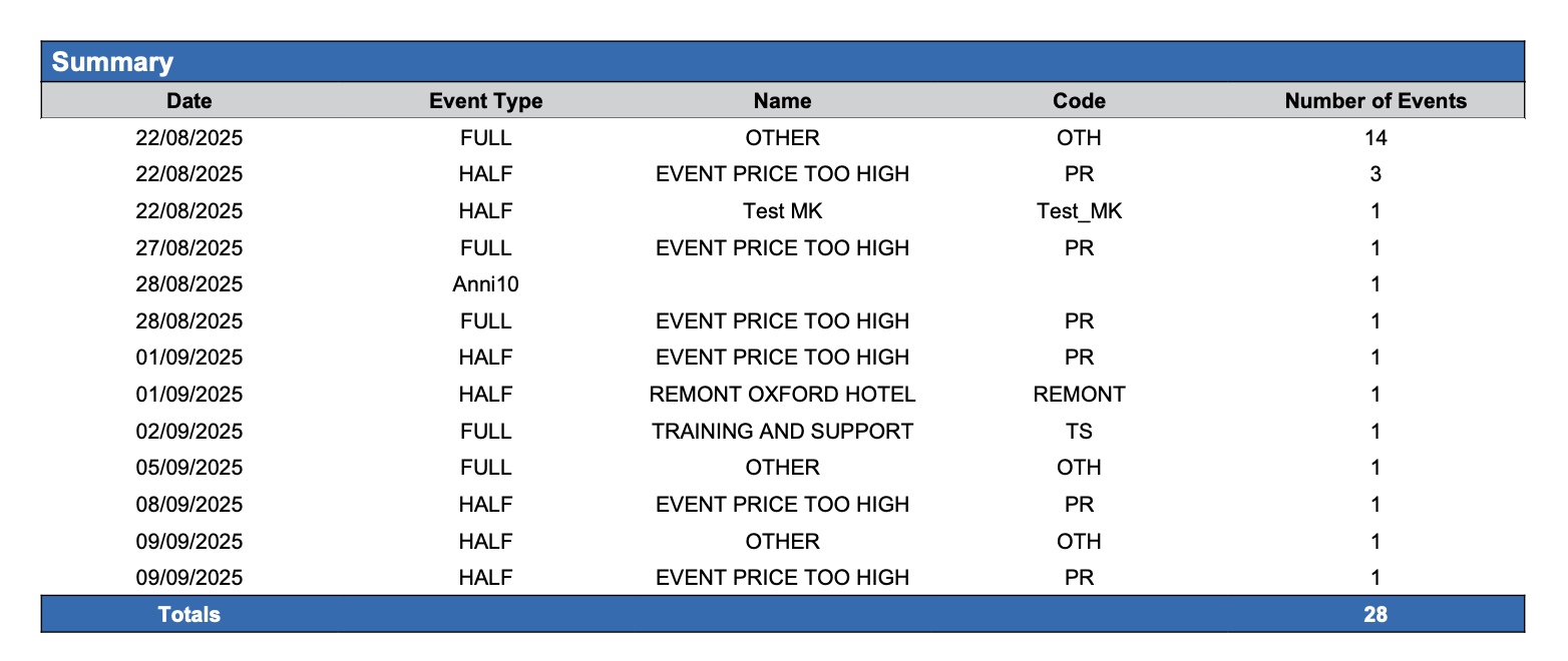 By capturing this data, the report enables event managers, sales teams, and leadership to identify common trends or barriers to conversion—such as lack of availability, budget constraints, or mismatched client requirements—and take action to improve future business capture rates.