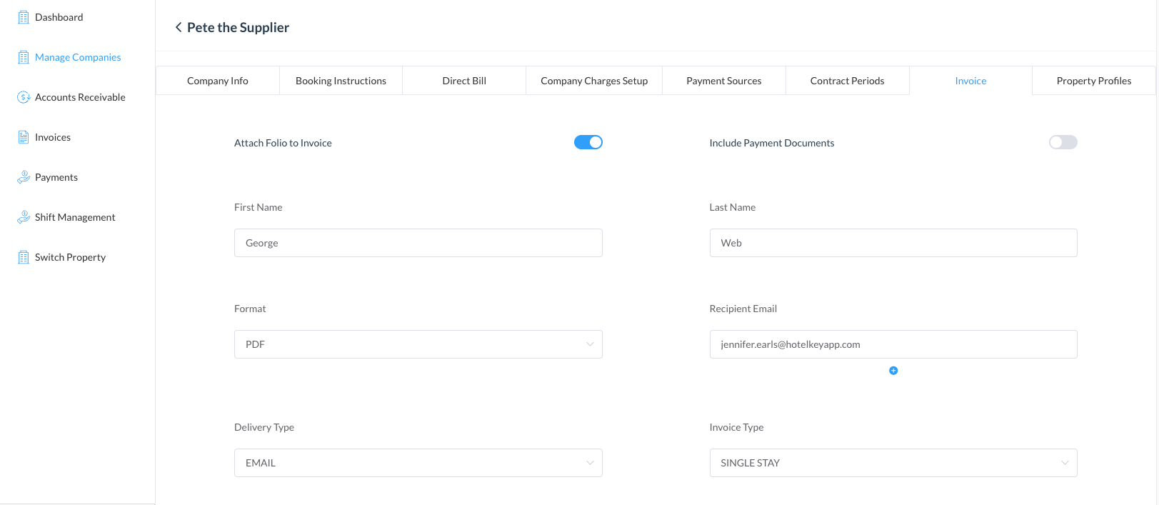 Accédez au menu « Gérer les entreprises » et sélectionnez l'entreprise à laquelle vous avez envoyé la facture par e-mail. | ![]() |