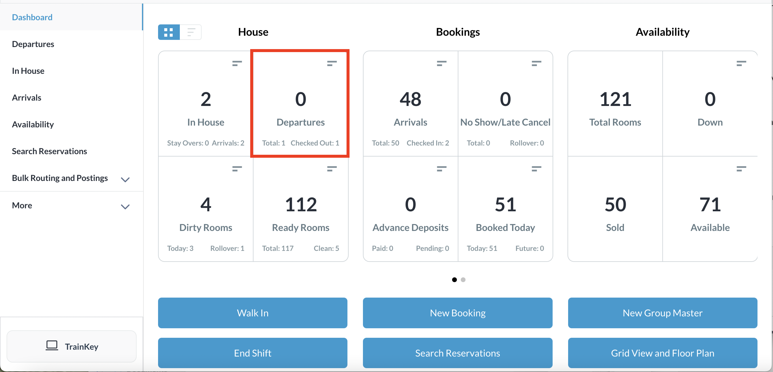Sélectionnez la vignette Départs sur le tableau de bord. |