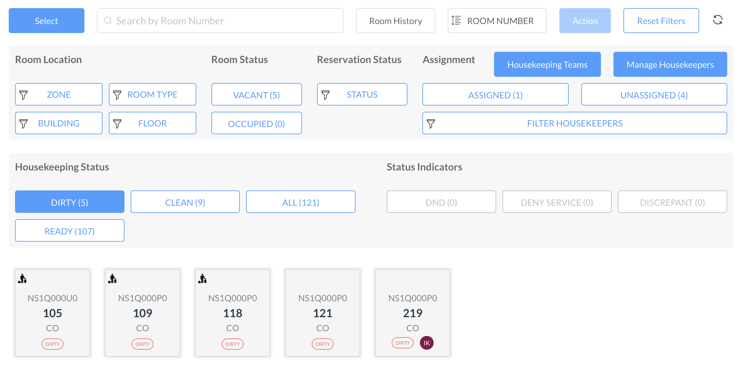 Le statut de toutes les chambres sélectionnées est mis à jour et les chambres concernées sont réaffectées au groupe applicable sur la page Ménage (« PROPRE », « PRÊT » ou « SALE »). | ![]() |