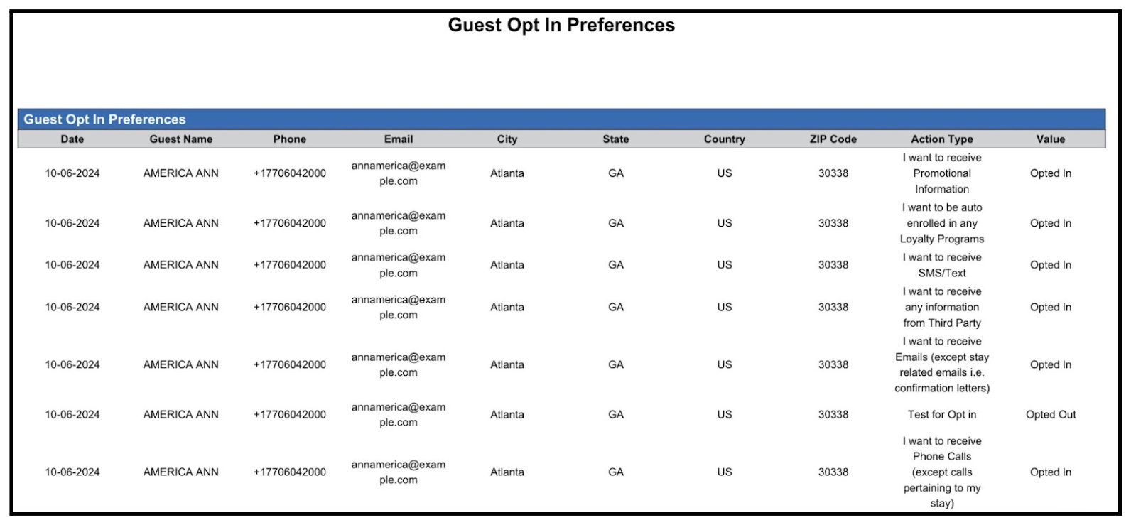 Report Description: The Guest Opt In Preferences report provides a recap of the communication items a guest has consented to or withdrawn as part of the General Data Protection Regulation (GDPR) requirements.