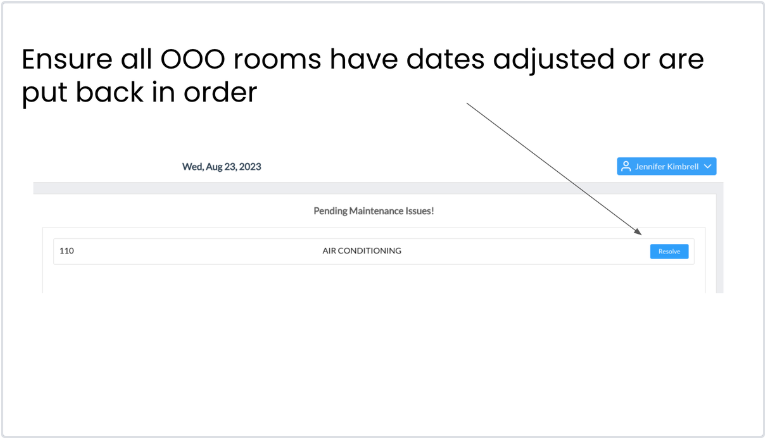 Avere saldi in sospeso su prenotazioni già effettuate è un elemento che può impedire il proseguimento del controllo notturno* (in base alla configurazione della struttura). Per rimuovere questo blocco, è necessario che il conto sia saldato per poter continuare. Vedi i passaggi aggiuntivi di seguito.-