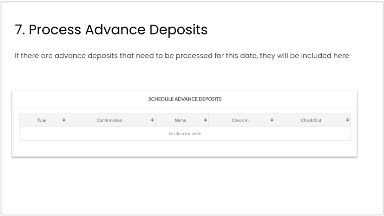 Si consiglia di completare le seguenti operazioni ogni sera prima di eseguire il Night Audit-