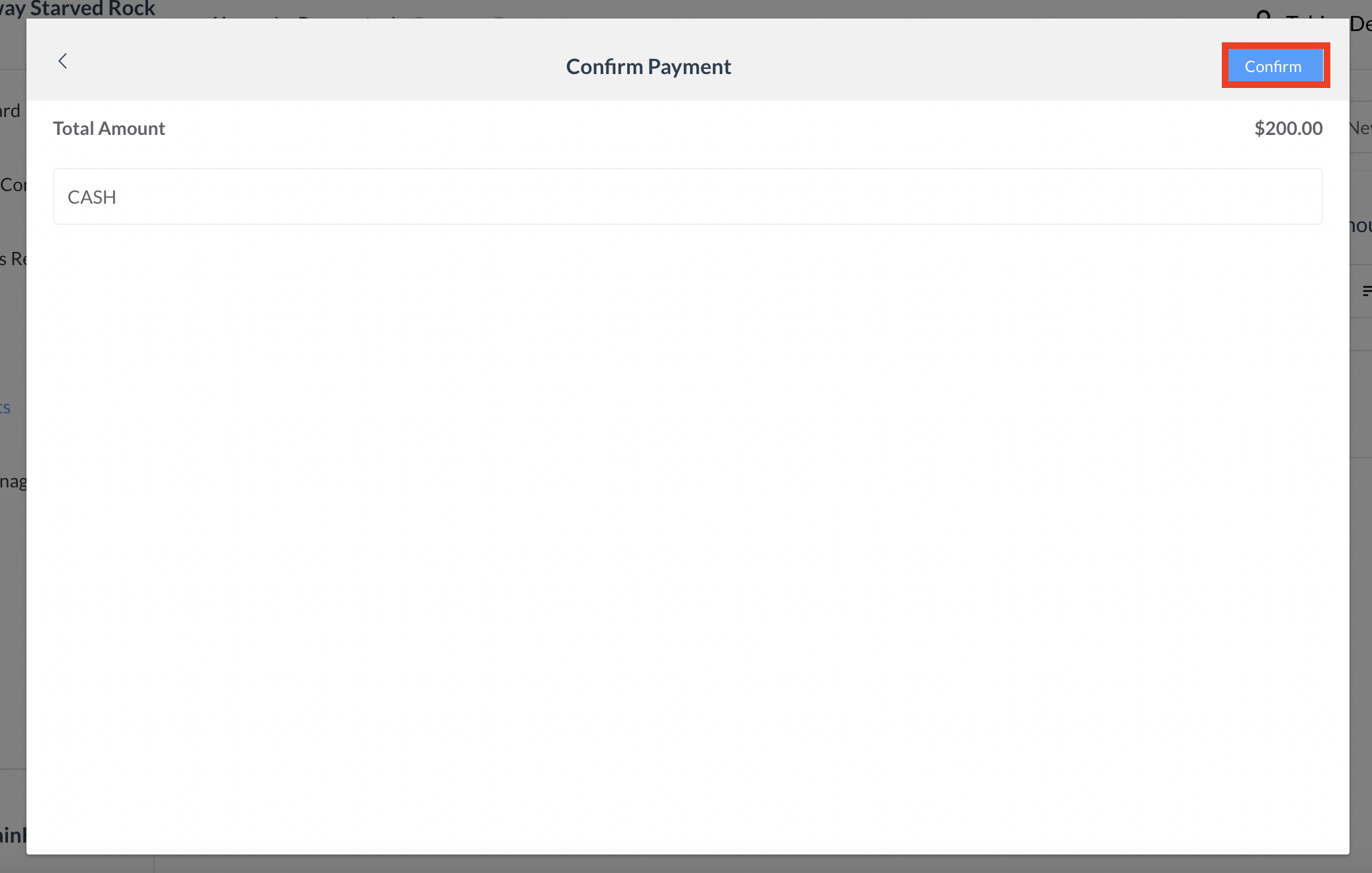 The Confirm Payment popup activates. Select Confirm to confirm the payment. | ![]() |