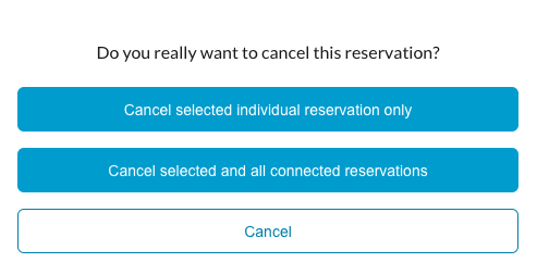 Annulla la selezione e tutte le prenotazioni collegate Una volta selezionata, viene visualizzata la schermata Annulla prenotazione