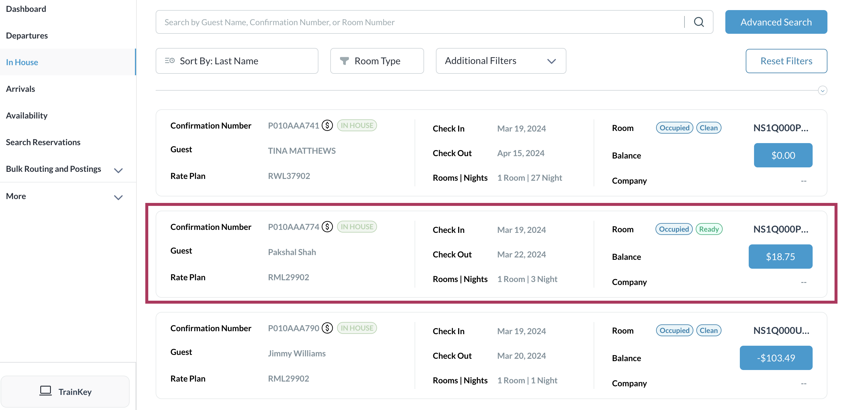 Questo articolo illustra i passaggi per spostare una prenotazione interna in una nuova stanza