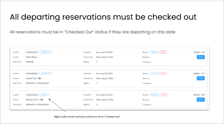 出発予定の予約がすべてチェックアウトされていることを確認