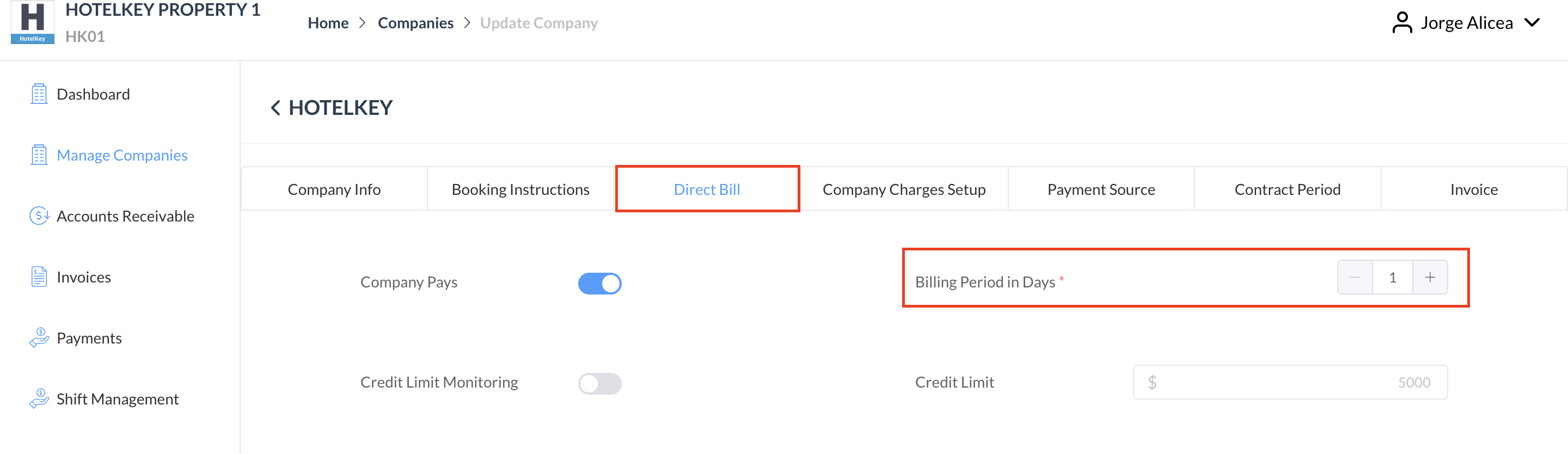 プラス (+) 記号を選択して支払請求周期の日数を変更し、 保存選択して変更を確定し、会社情報の更新ページを閉じる。 | ![]() 直接請求タブ - 変更内容の確認 |