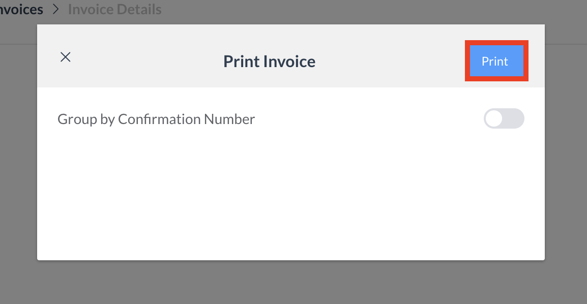 Print Invoice: The Print Invoice popup activates. Select Print. | ![]() |