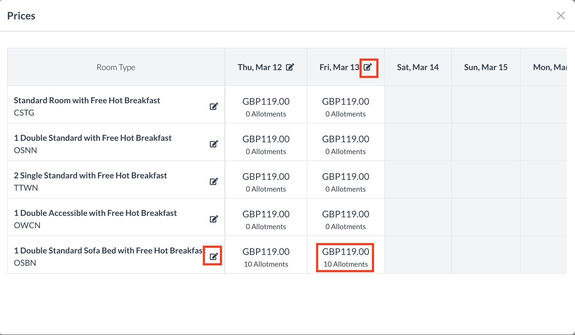 3. Edit All Room Types for a Specific Date