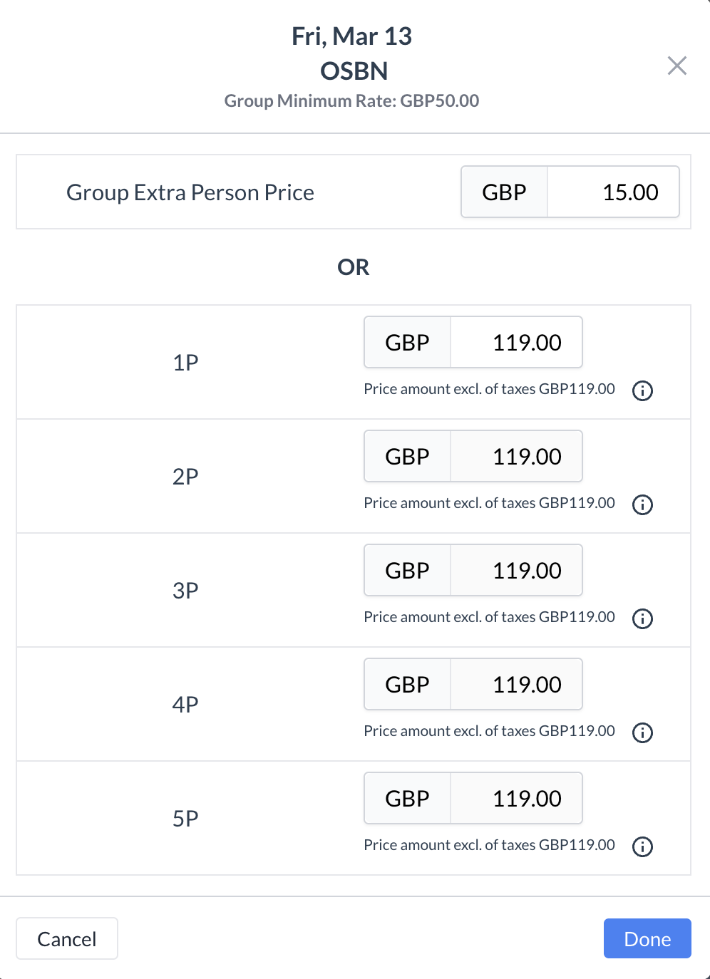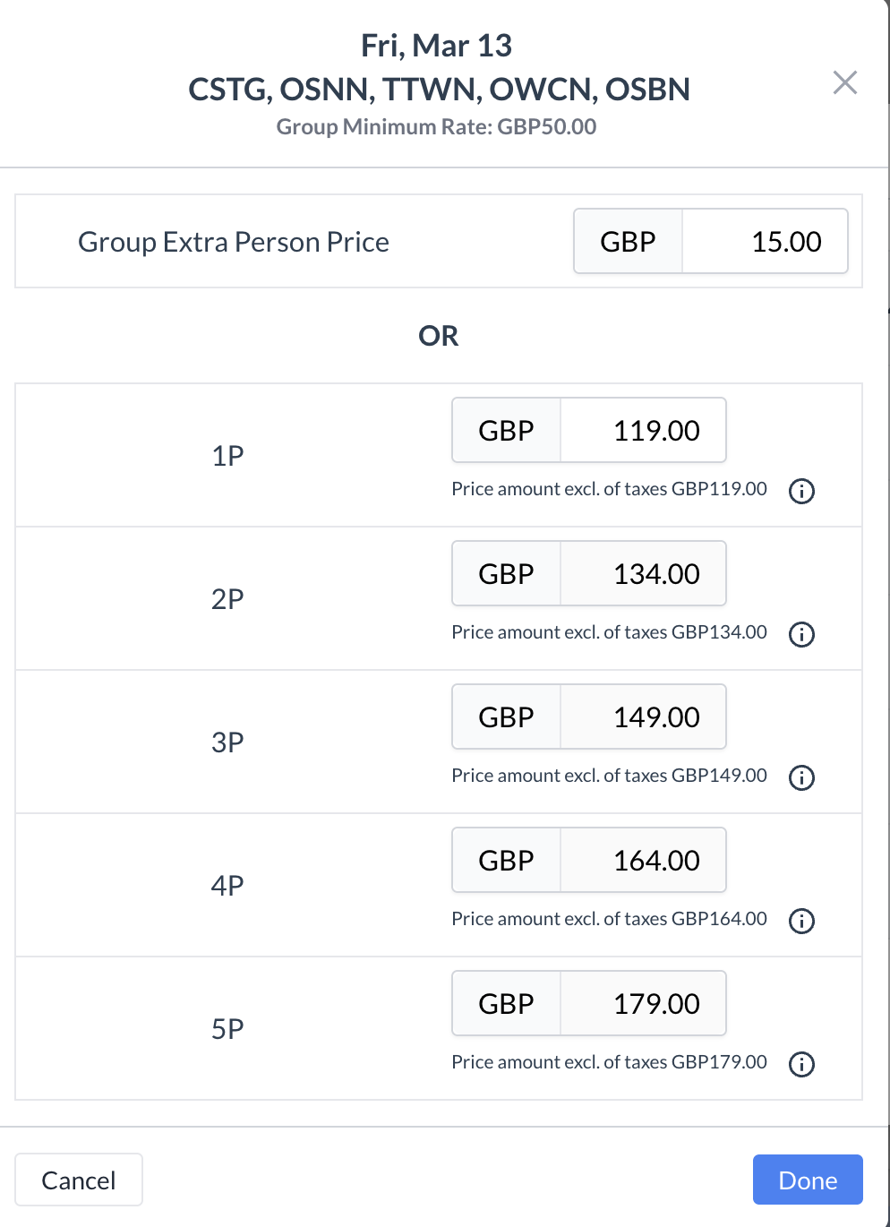 ✅ Final StepAfter reviewing and making any necessary changes, click the blue “Done” button to save the pricing changes. | ![]() Edit Pricing ![]() Edit Pricing - Individual Day & Specific Room Type ![]() Edit Pricing - All Dates for a Room Type ![]() Edit Pricing - All Room Types for a Single Day |