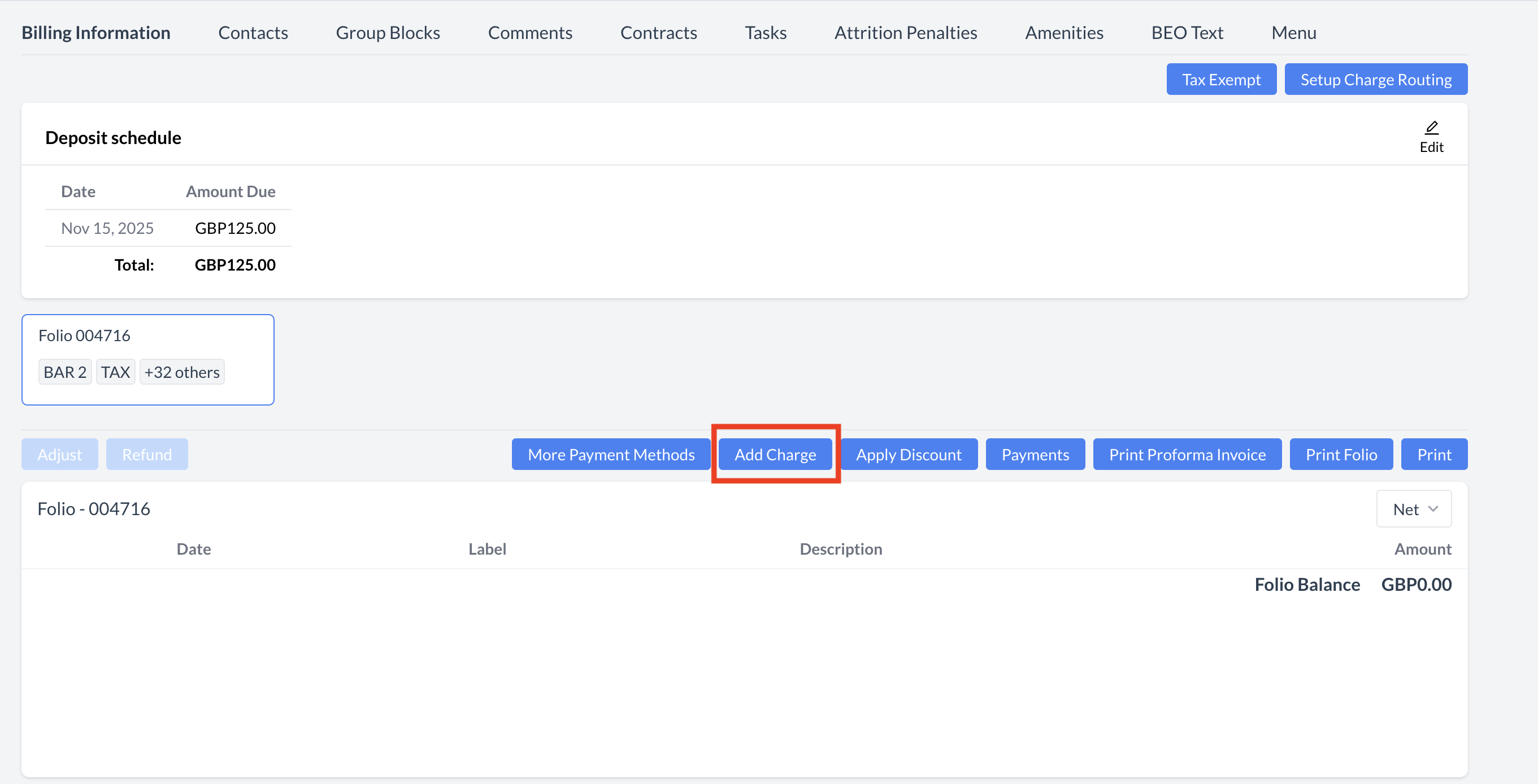 🧾 Manually Posting Charges to an EventWhile charges are typically posted automatically, there may be situations where you need to manually post charges to an event. This can be done quickly through the Billing Information screen. Follow the steps below to add a charge manually: 🔹 Step 1: Access the Add Charge Function