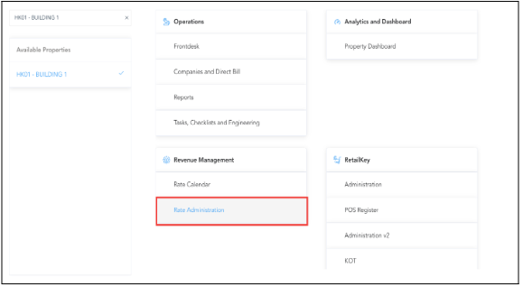 Select Rate Administration on the HK Home page. | ![]() HK Home Page - Rate Administration Link |