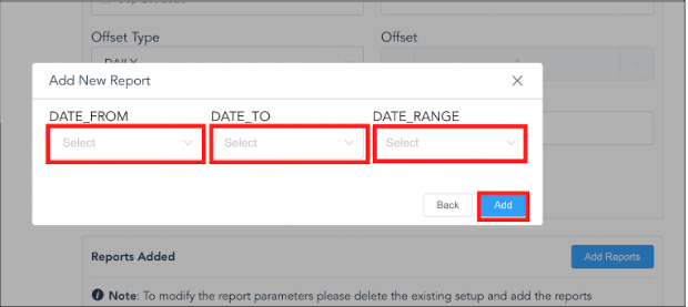 Select date ranges for the report and select Add. The report will then be added to the respective report. | ![]() |