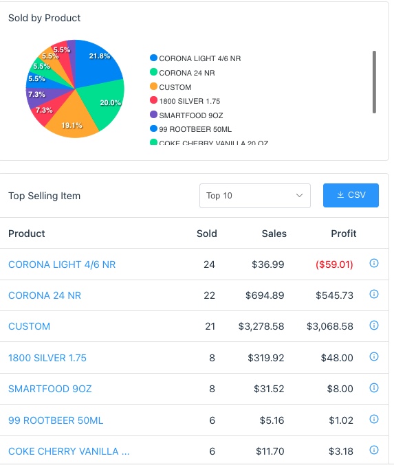 Here is an example of a search for the Top 10 product sold on the given dates of the search criteria provided | |