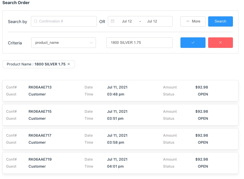 If we select the information source icon ℹ for 1800 Silver 1.75, we will be directed automatically to the search order list where this product was sold on this date: |