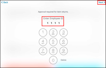 If Manager Override is enabled, the team member is prompted to enter their ID to confirm the refund request. Enter Employee ID and select Next. | ![]() Team Member ID Entry |