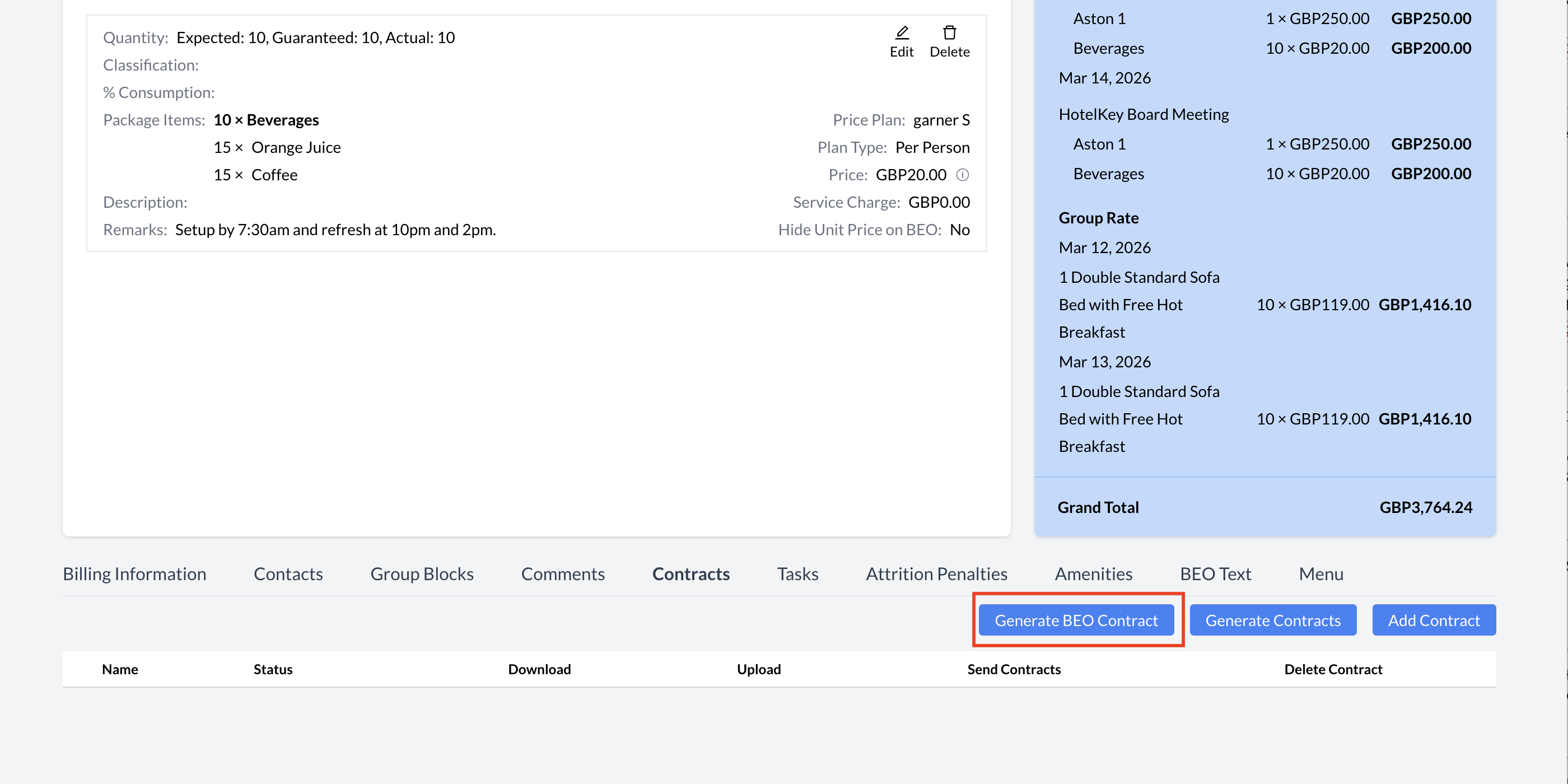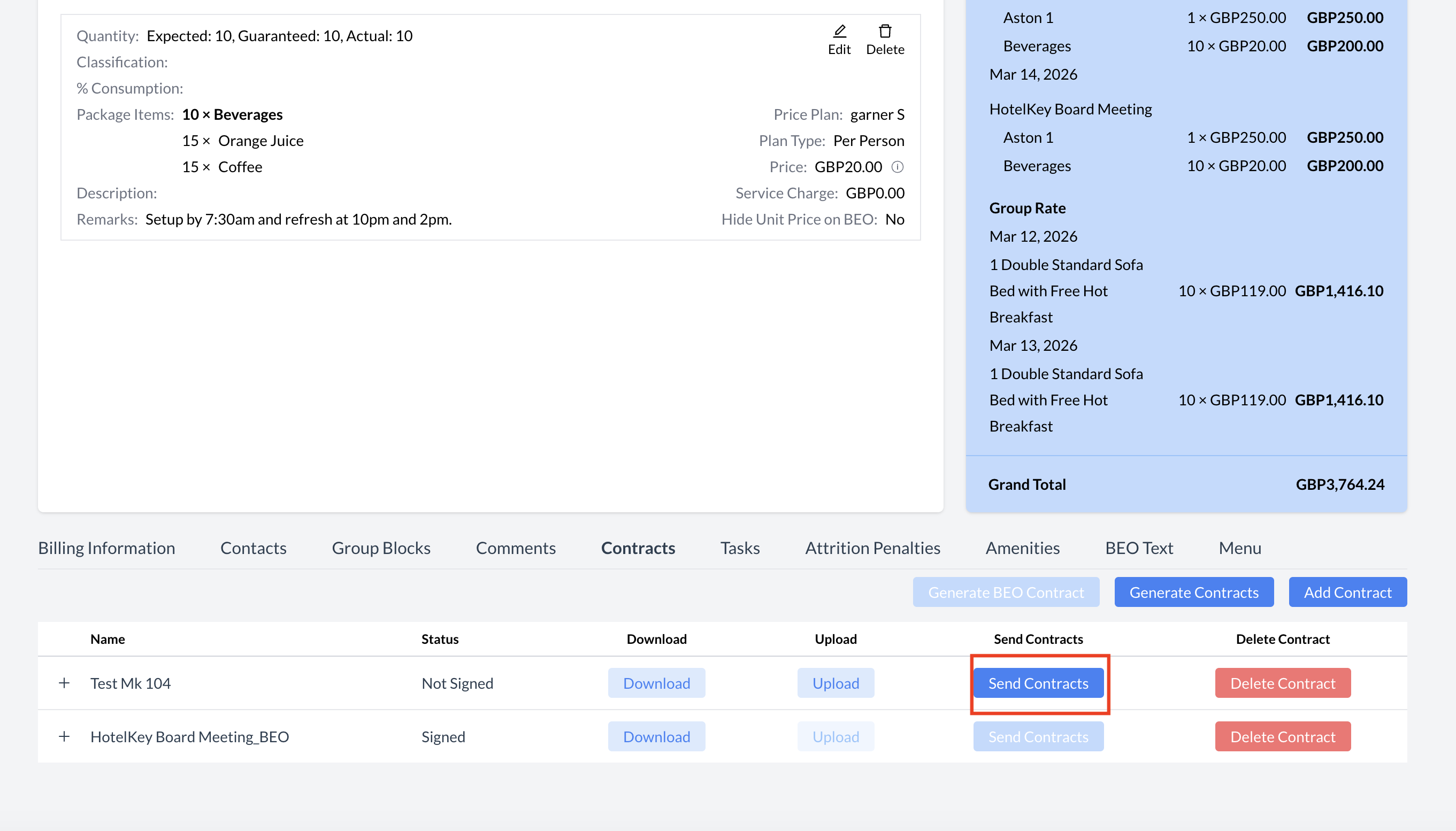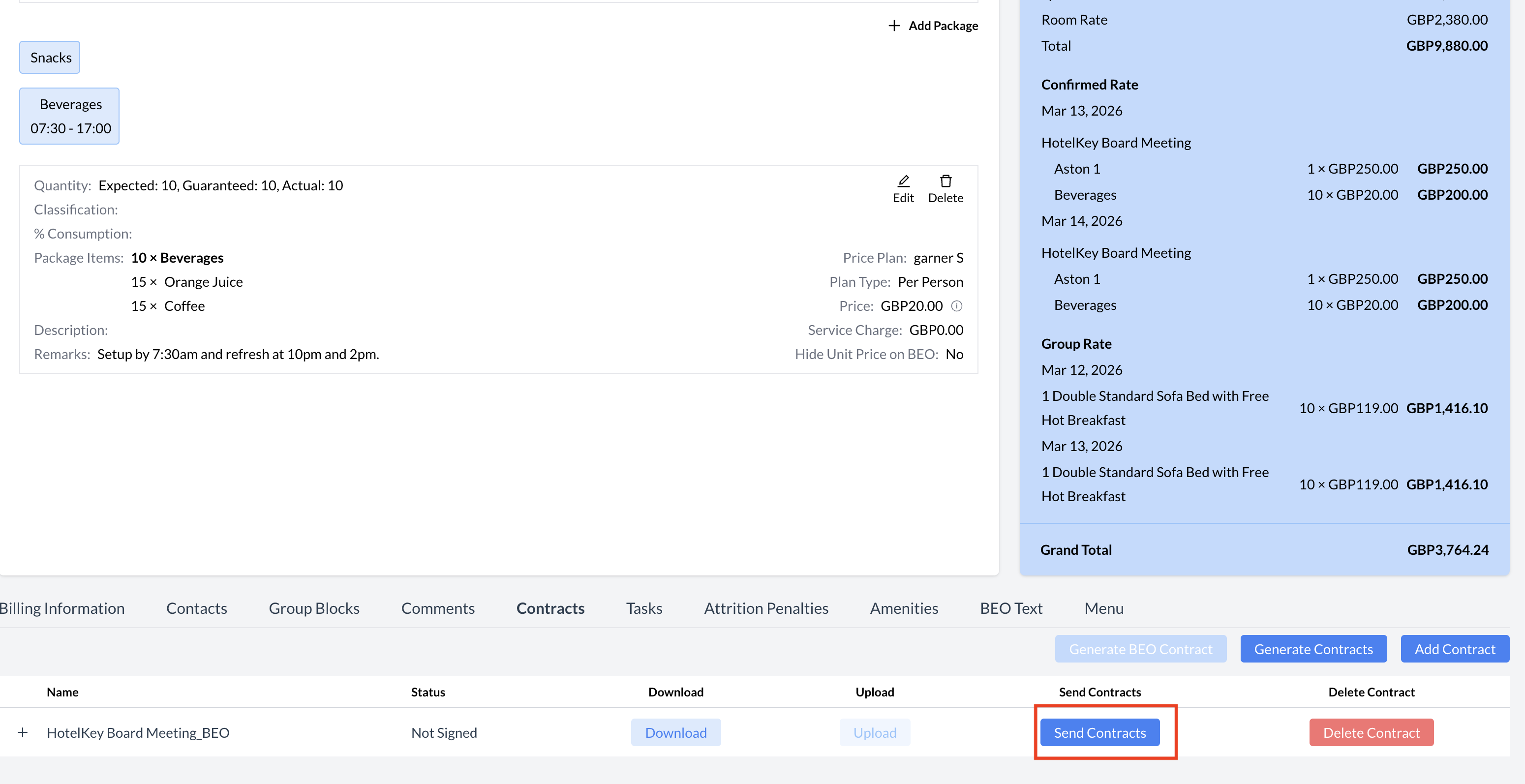 To create and send a BEO Contract, follow these steps: