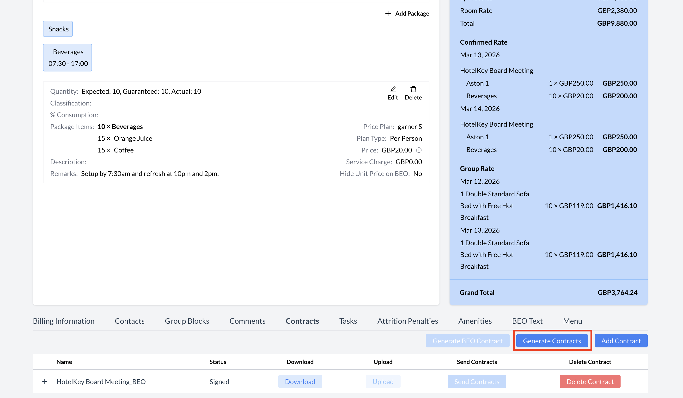 Contracts - Generate BEO Contract