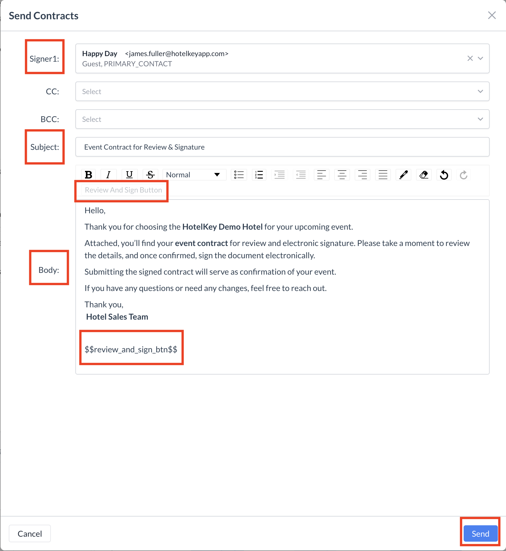💡 Tip: Be sure to double-check all event details before sending the Contract to ensure accuracy.