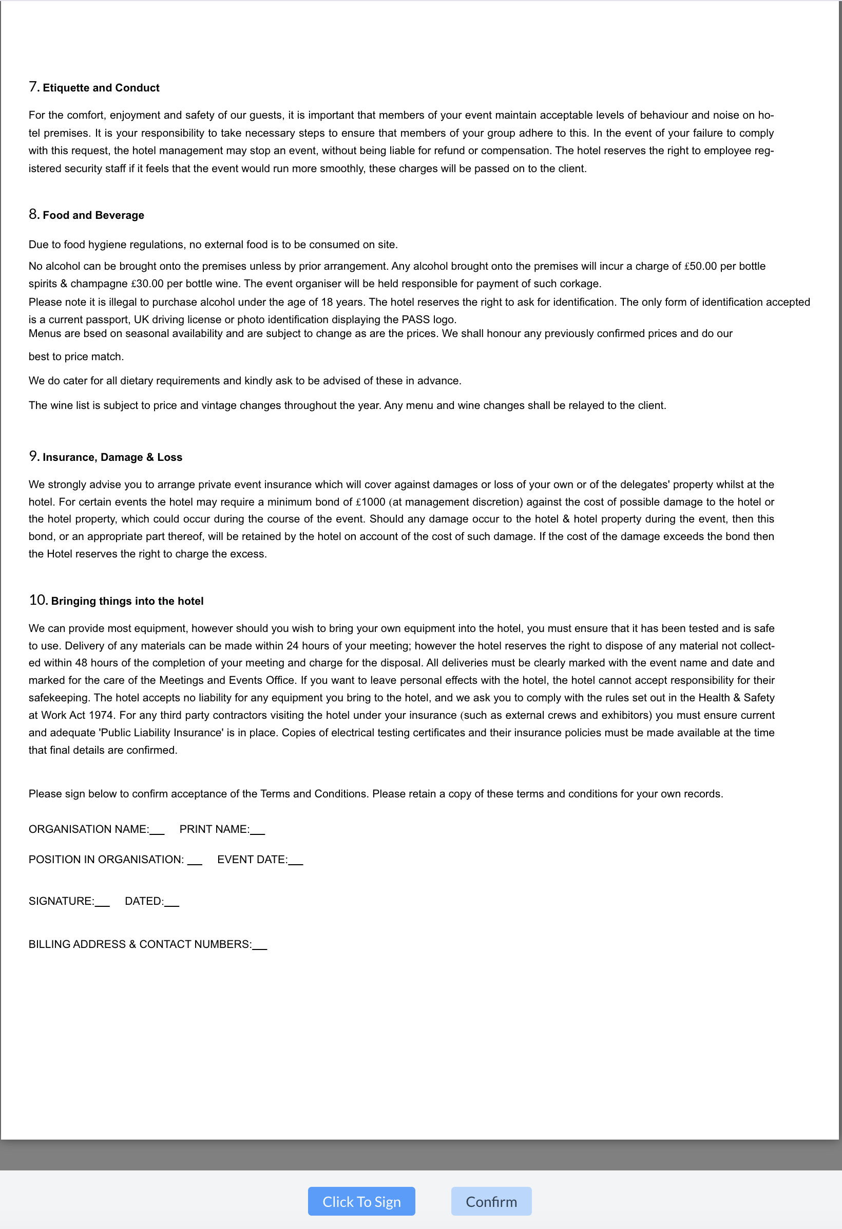 Review the BEO The signer should scroll through the document, reviewing each page carefully.