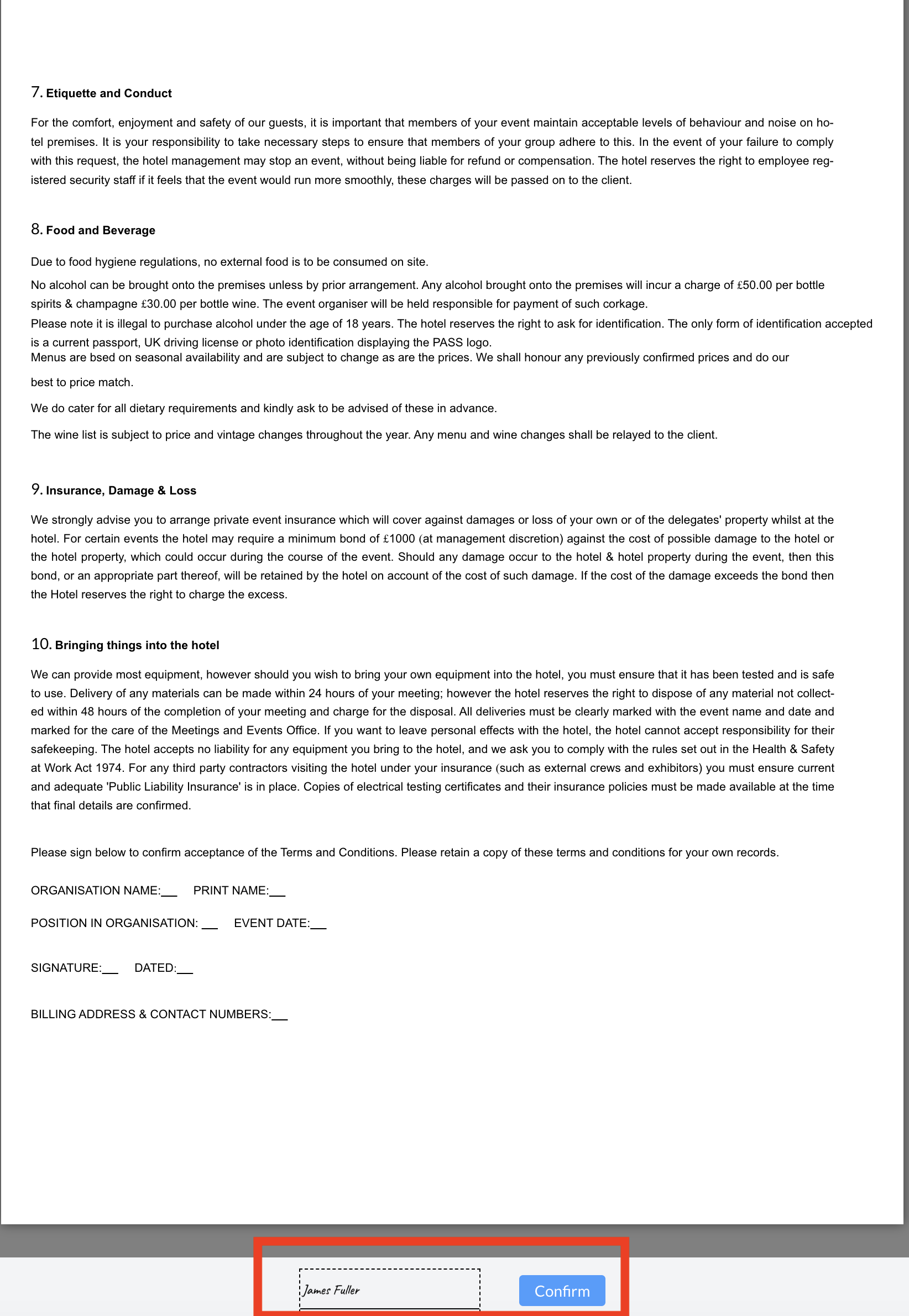 To complete the process, they must click the blue "Confirm" button at the bottom of the Contract.
