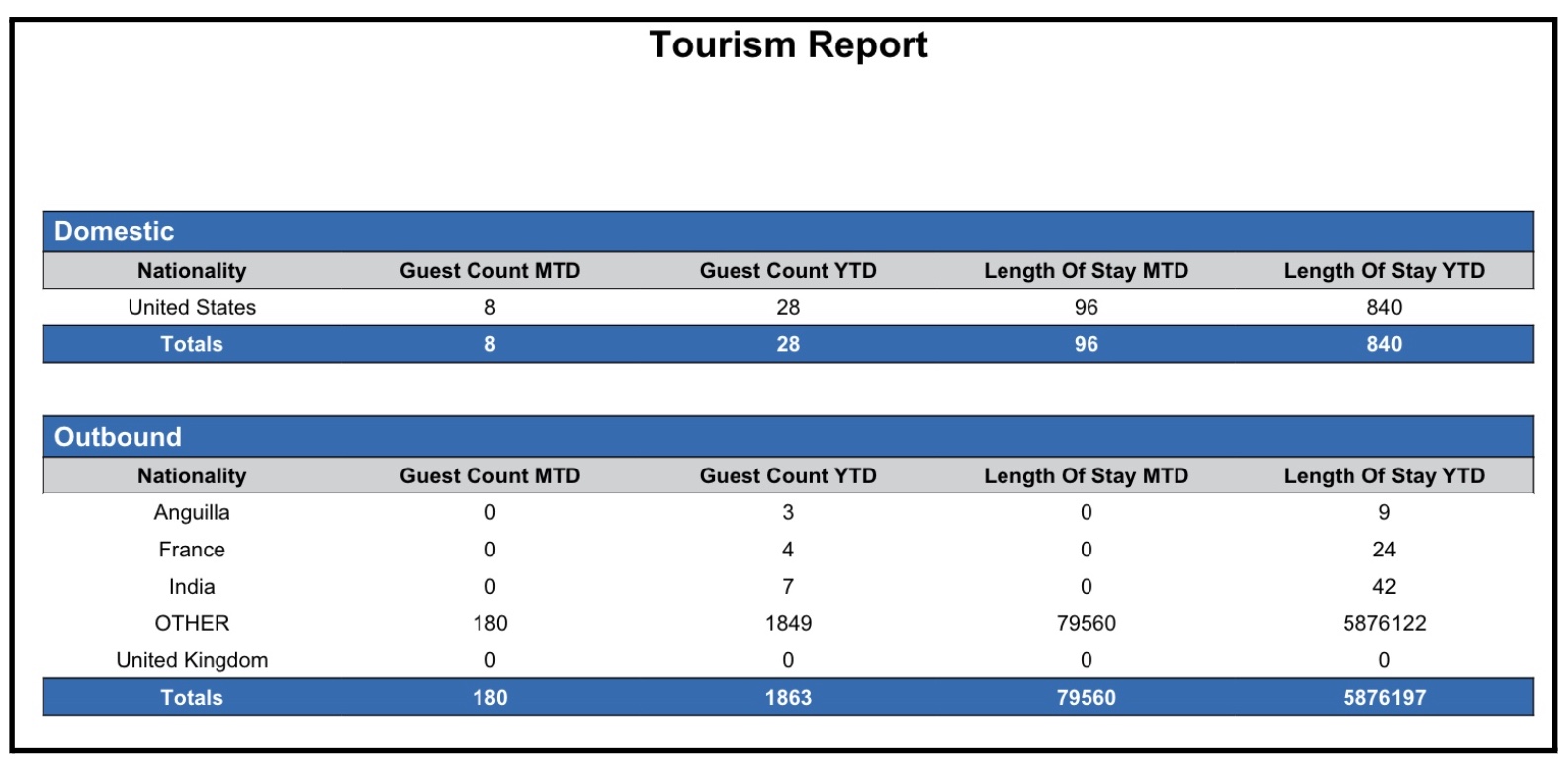 Report Description: Provides a list of nationality production (guest count and LOS) for the property by MTD and YTD.